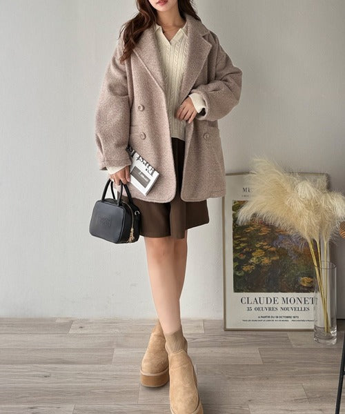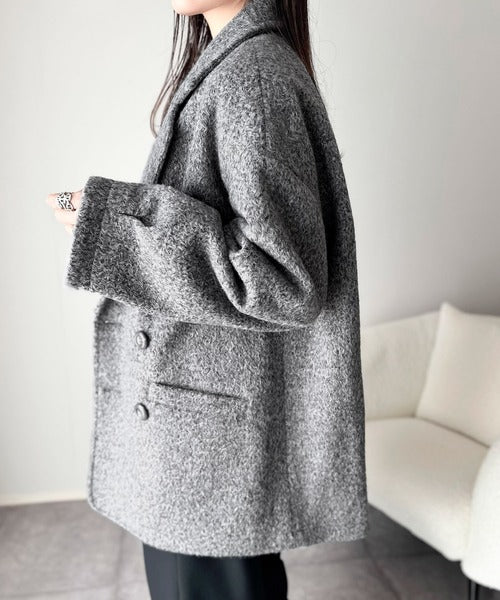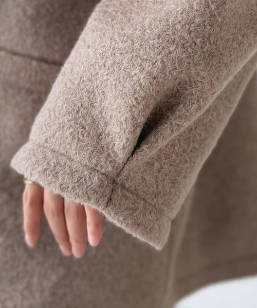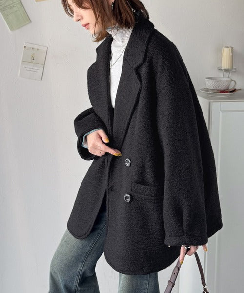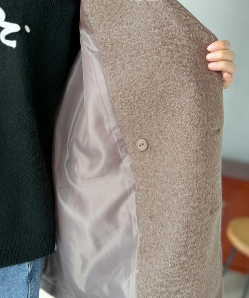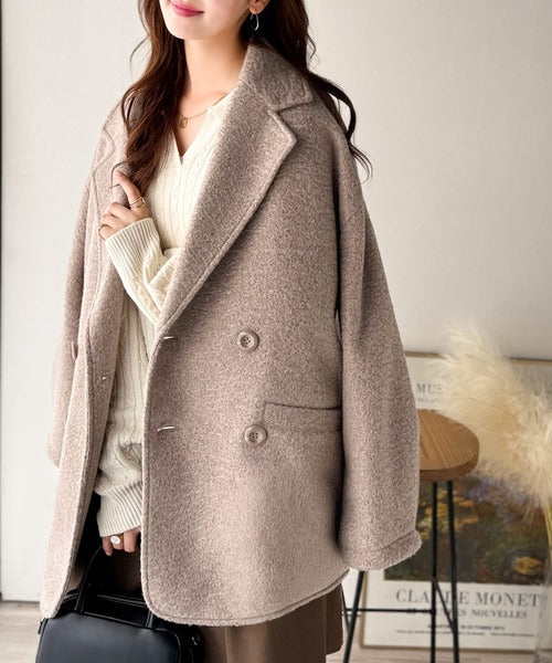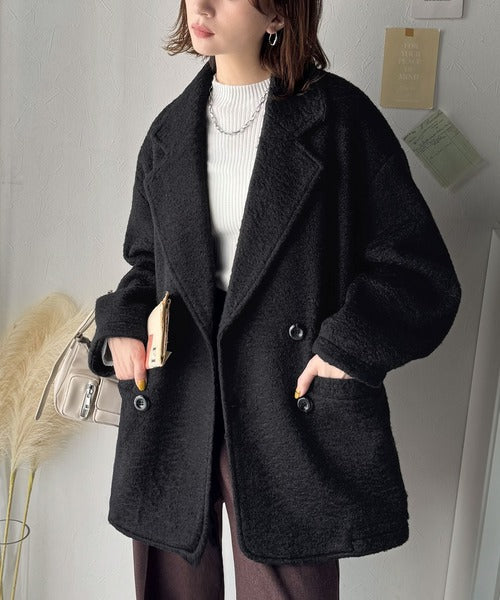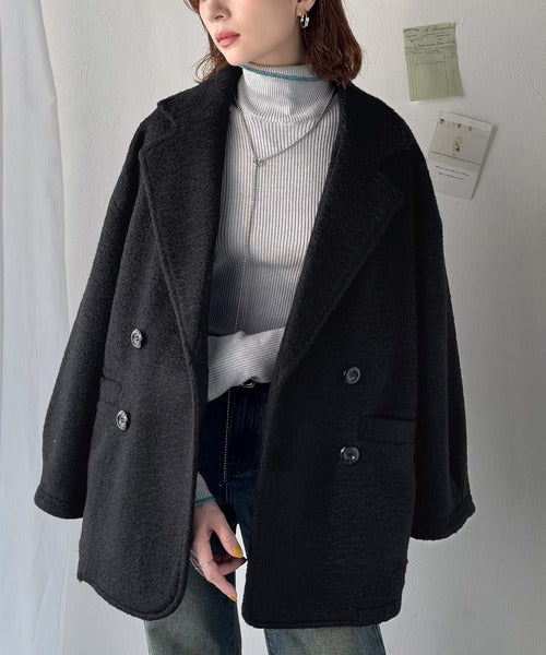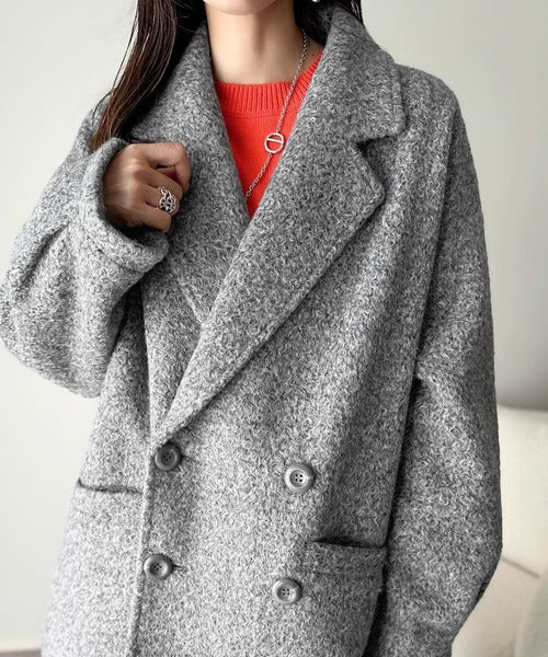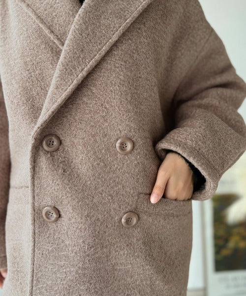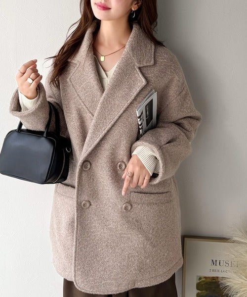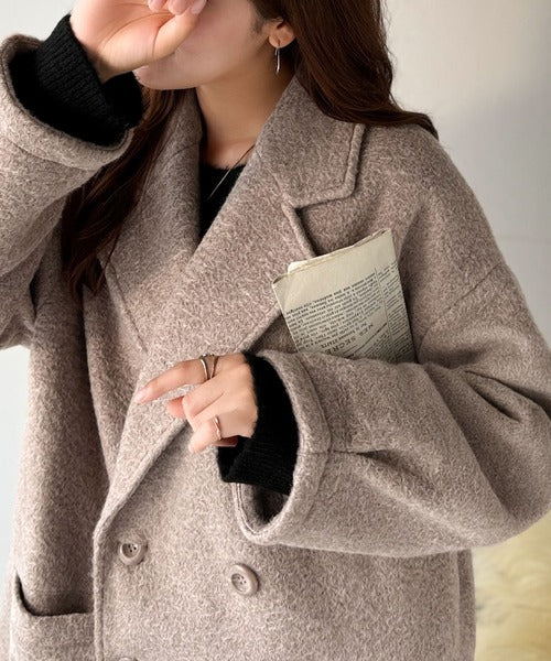 上品なフェイクウール素材を使用した、秋冬にぴったりのミドル丈Pジャケットコート。