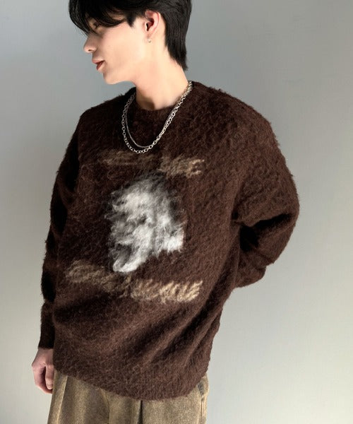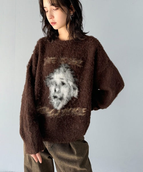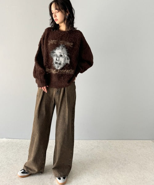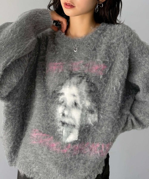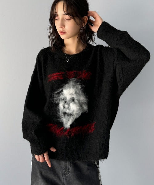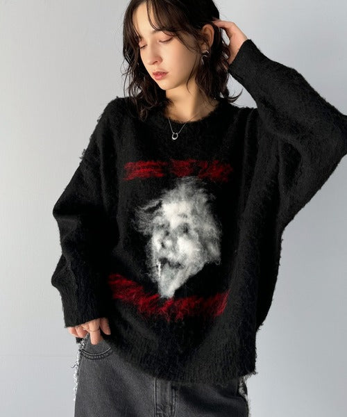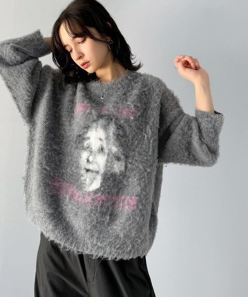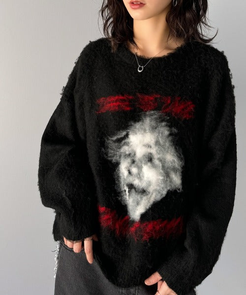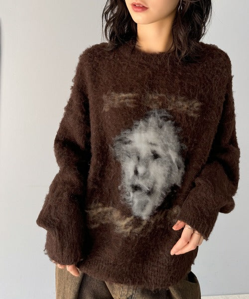 インパクト抜群!主役級トップス。人物モチーフ起毛シャギー素材ニット ce1020164
