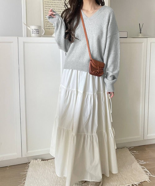 ふわっと軽やか◎メランジ調Vネックニットプルオーバー(長袖) ce1020269