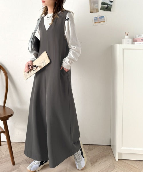 ストンとしたシルエットで華奢魅せのオールインワン。