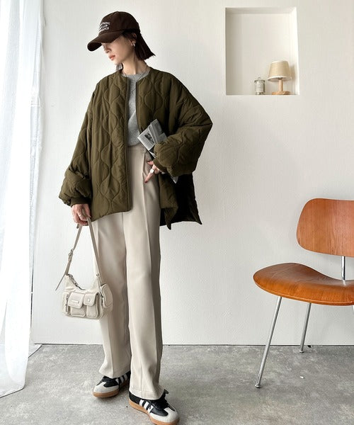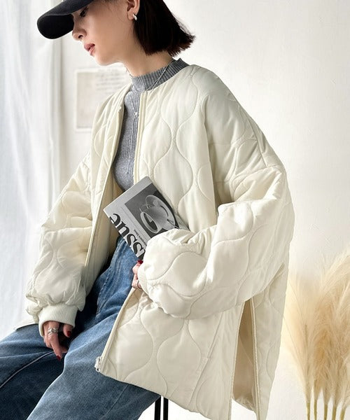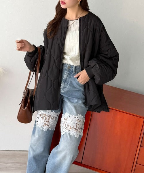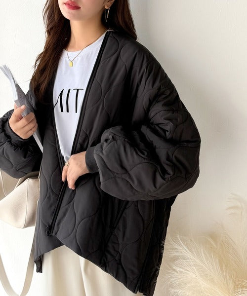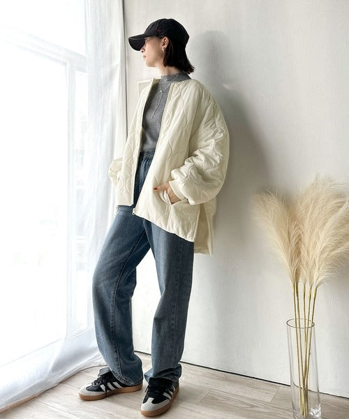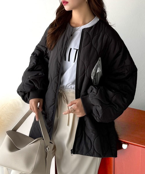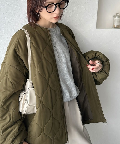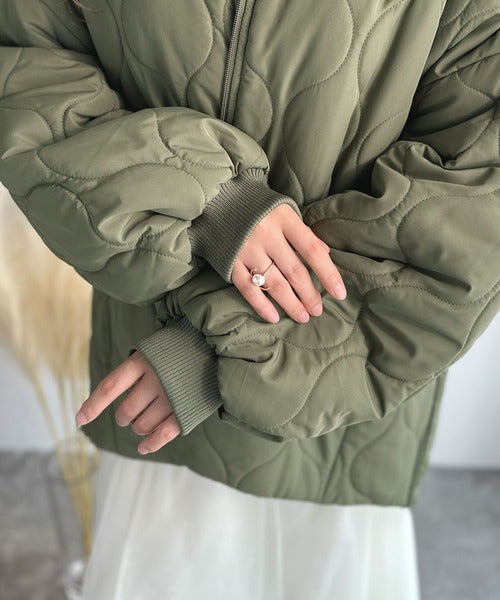 ふんわりシルエットが魅力の軽中綿キルティングジャケット。