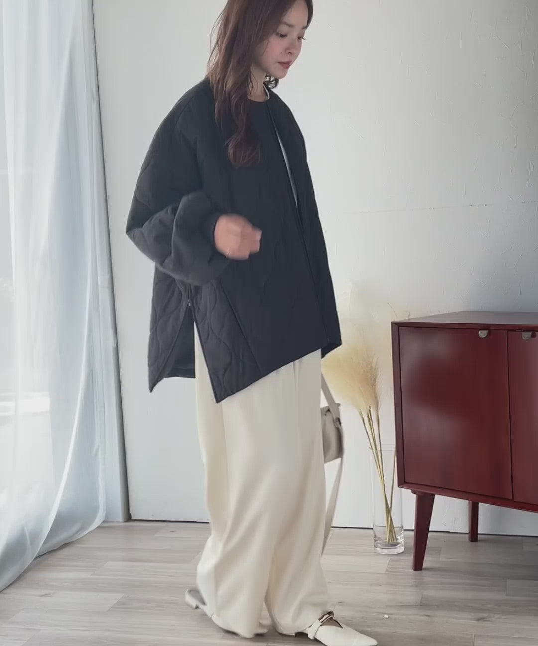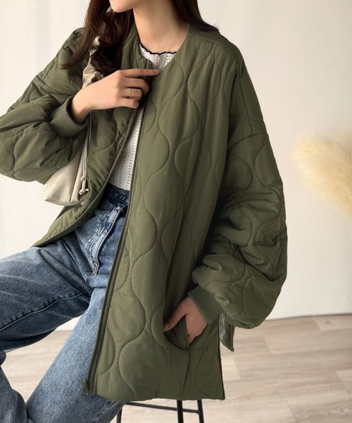 《JaVaジャバコラボ》軽やかでこなれ感漂う万能アウター♪サイドファスナーキルティングジャケット jv1010456