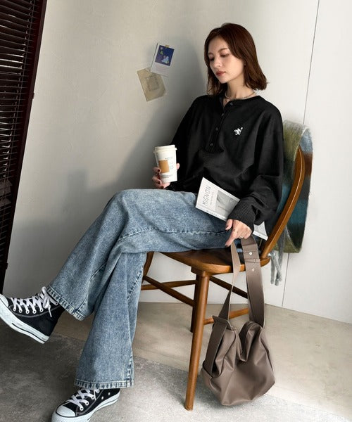 ゆるっとヘンリーネックで肩周りも窮屈感なく、着心地抜群です◎