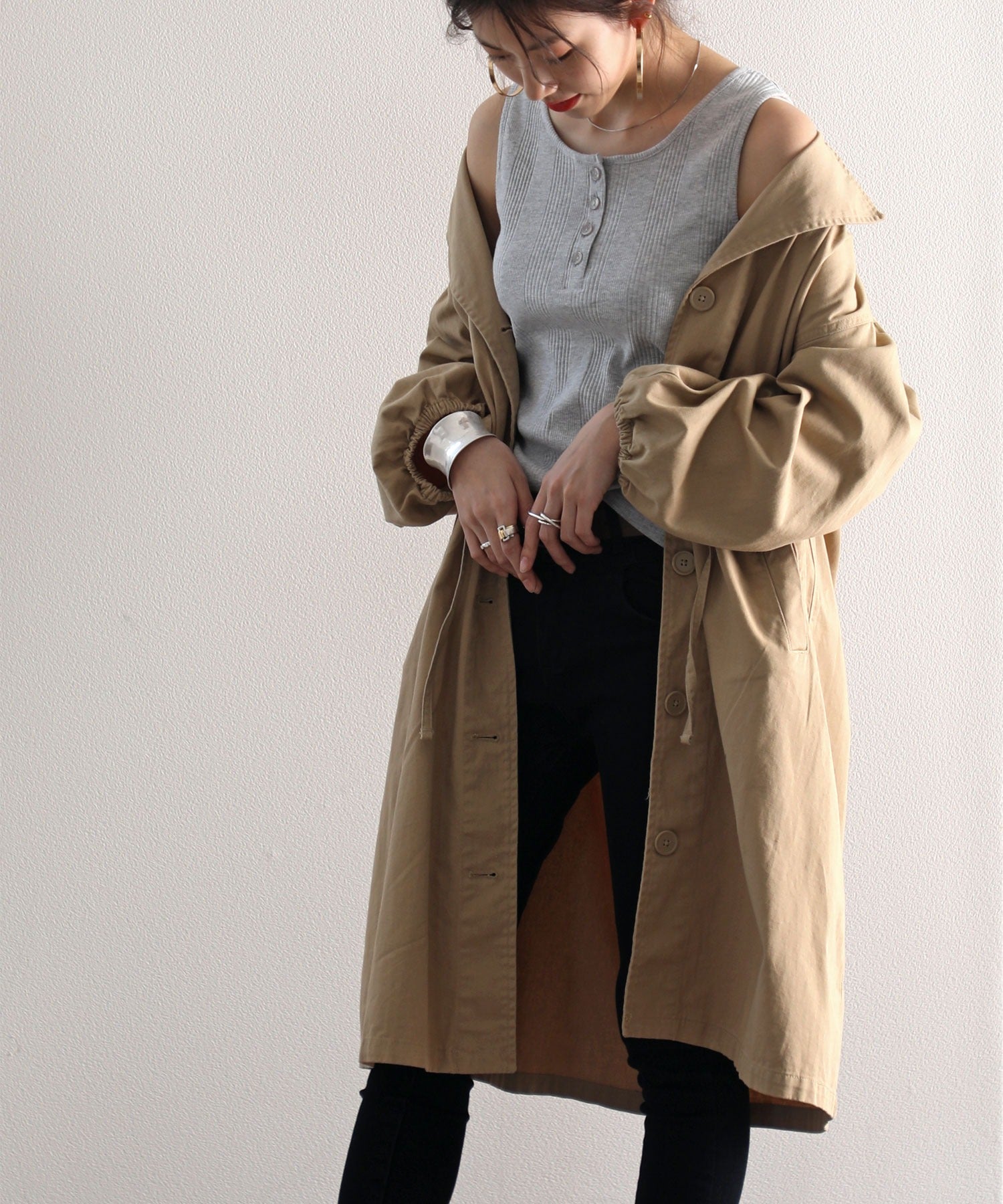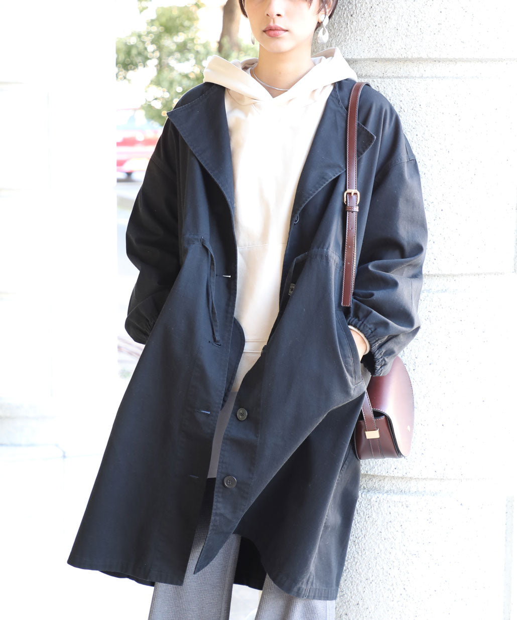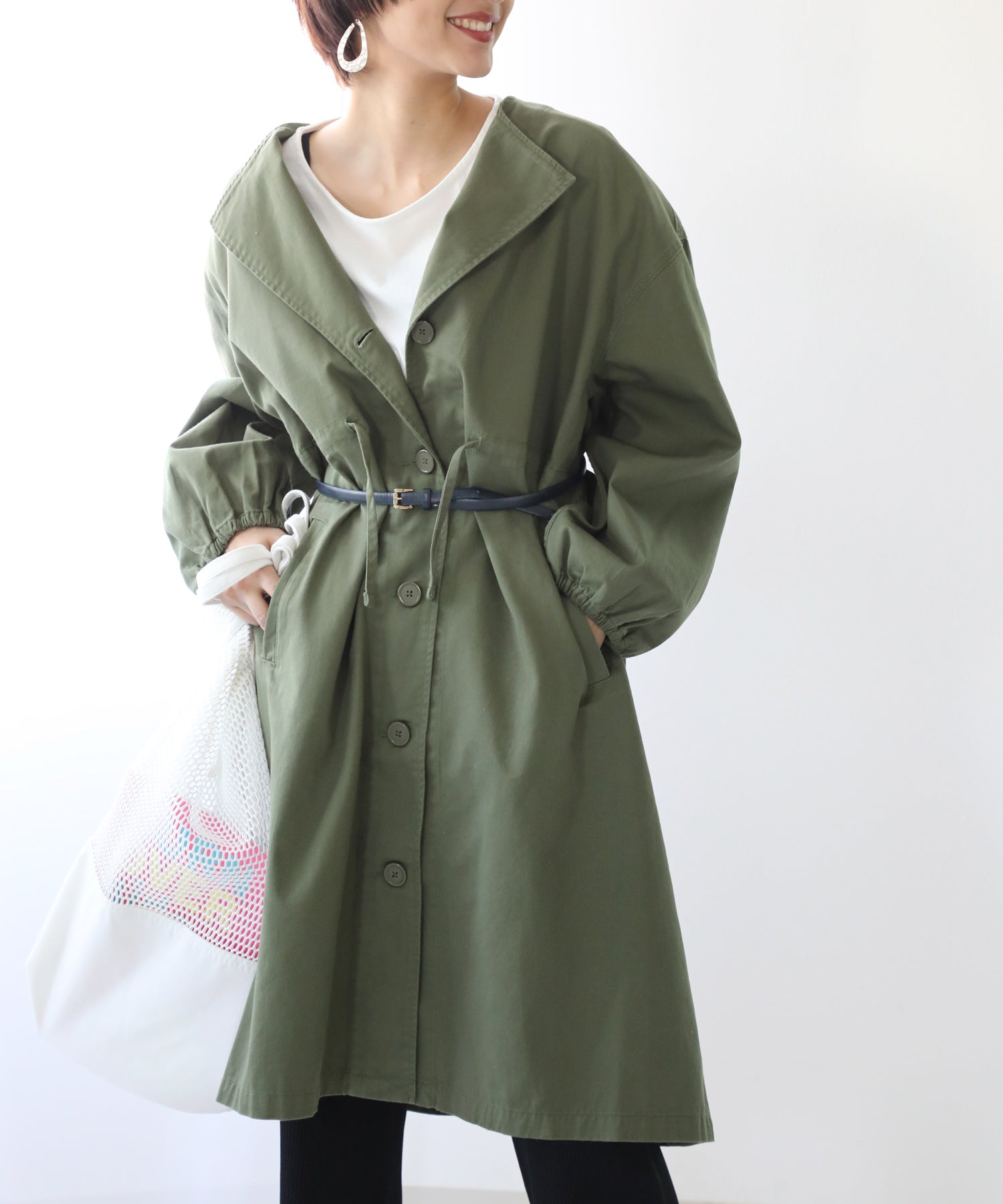 ノーカラーロング丈コットンスプリングコート(長袖・ロング丈) 195022