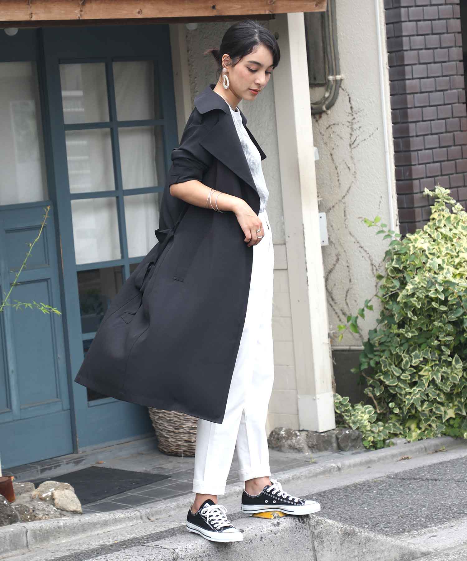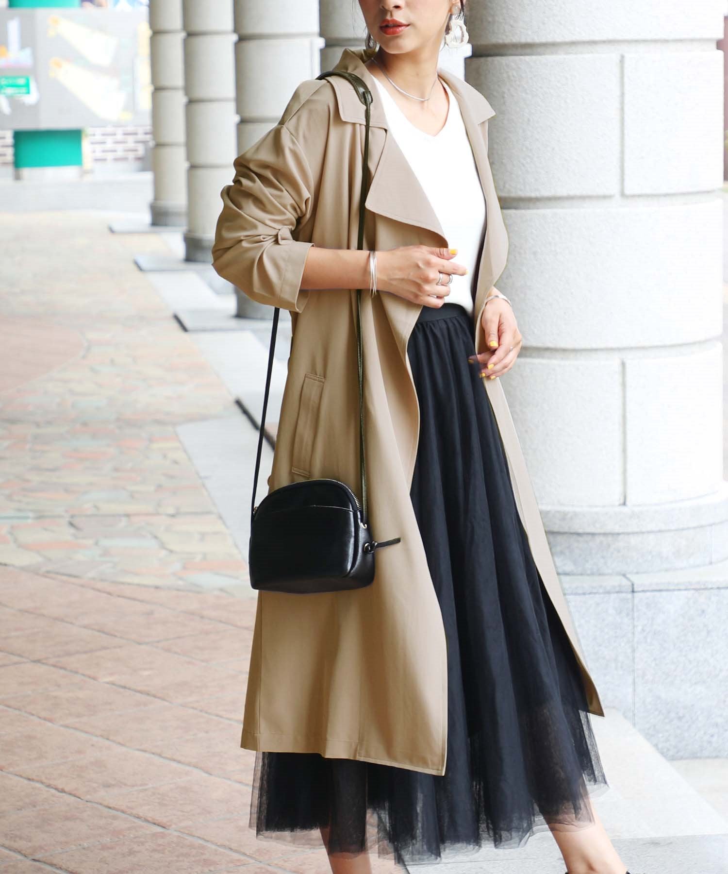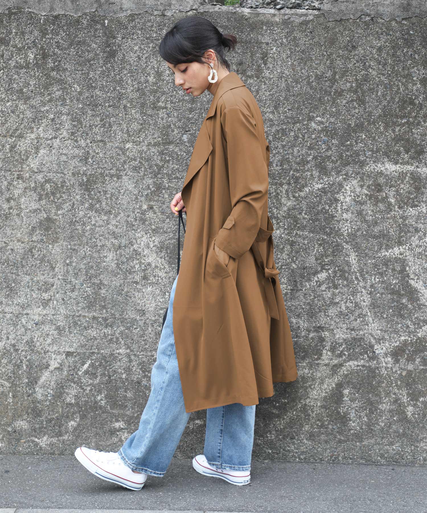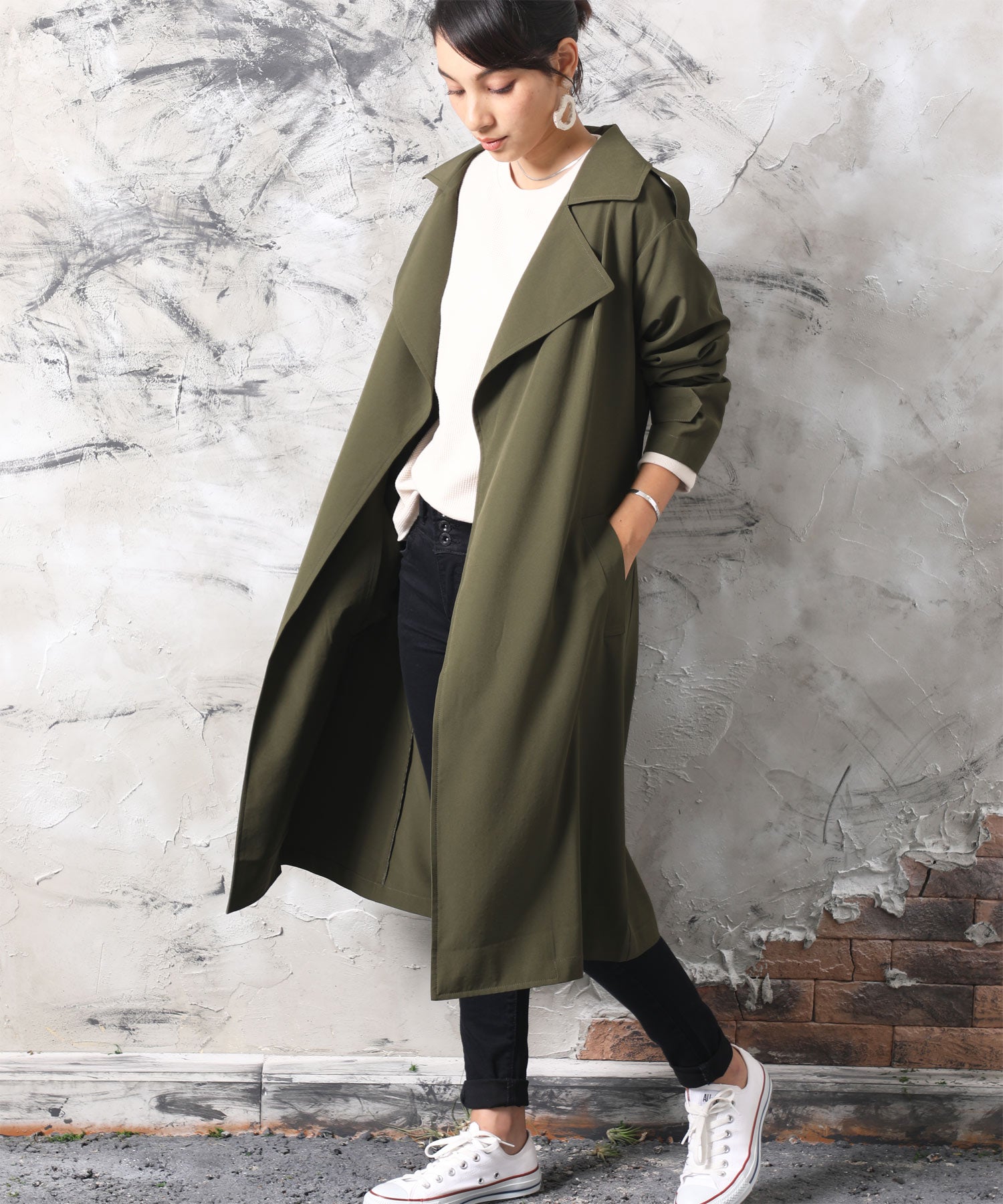 ★フェミニンな魅力あふれるノーボタンタイプのロングトレンチコート★