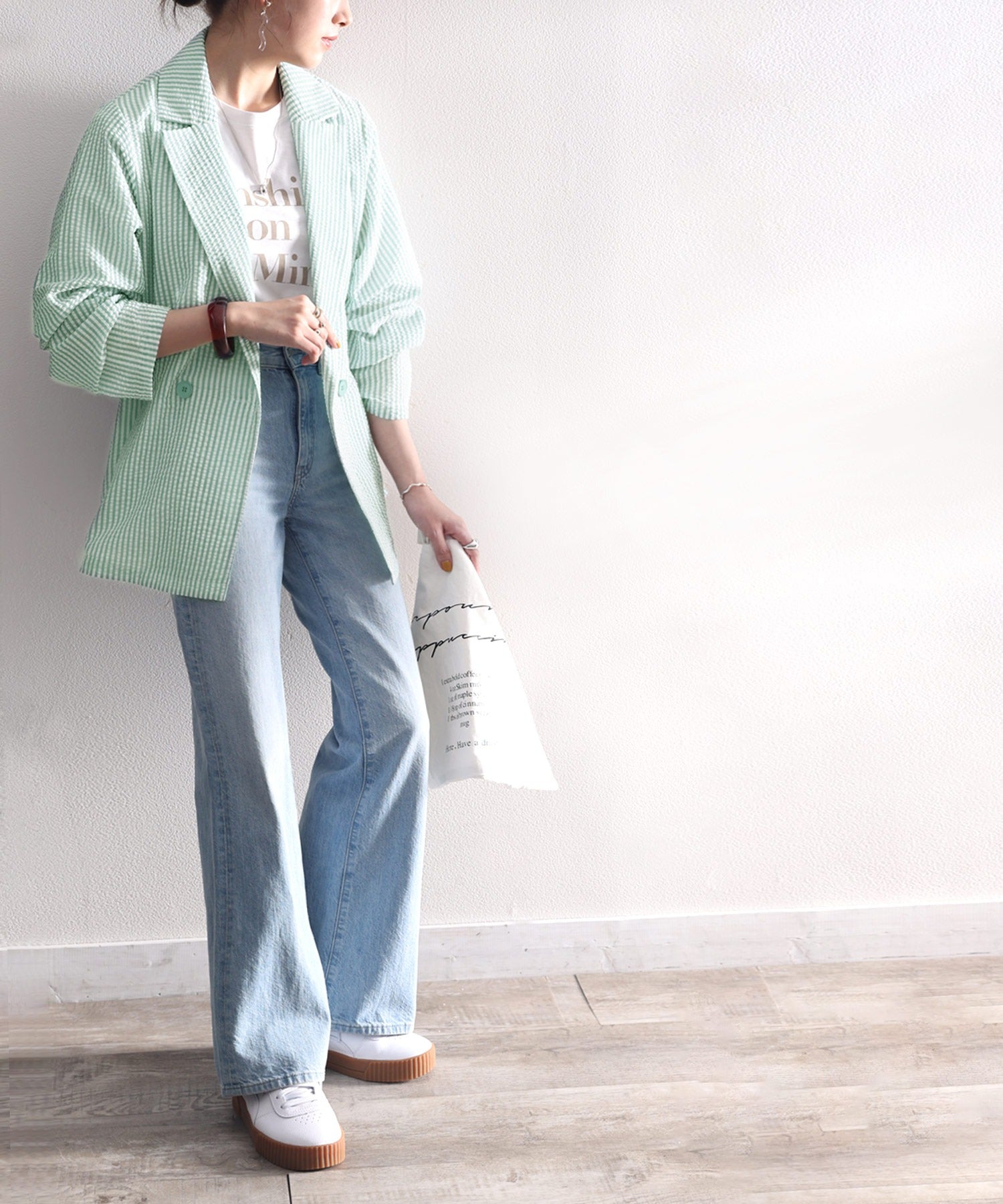 薄手の生地だから、ジャケットながらもカーディガン感覚で着れちゃう。
