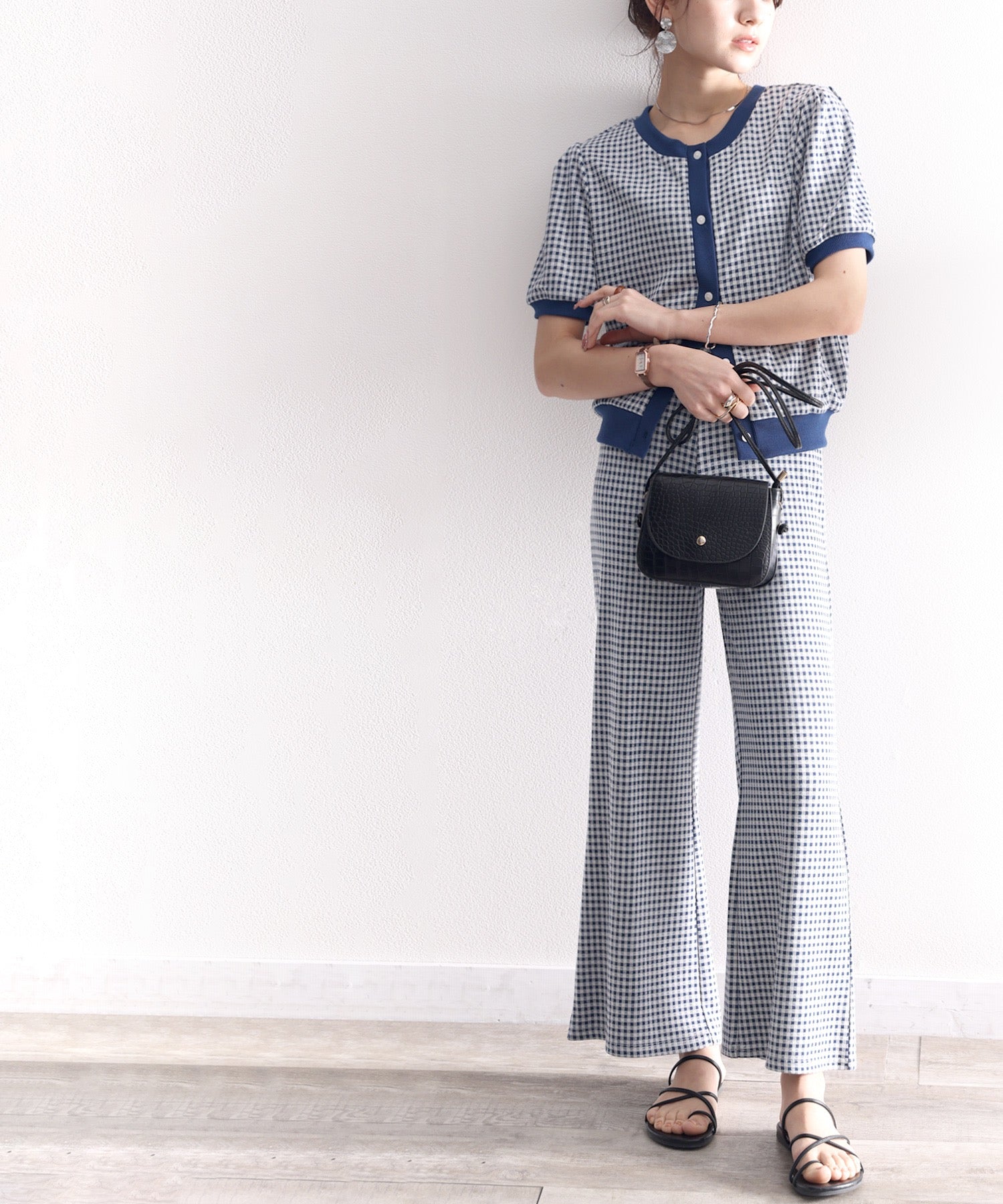 大人レトロ。ギンガムチェックセミフレアパンツ ce0420109
