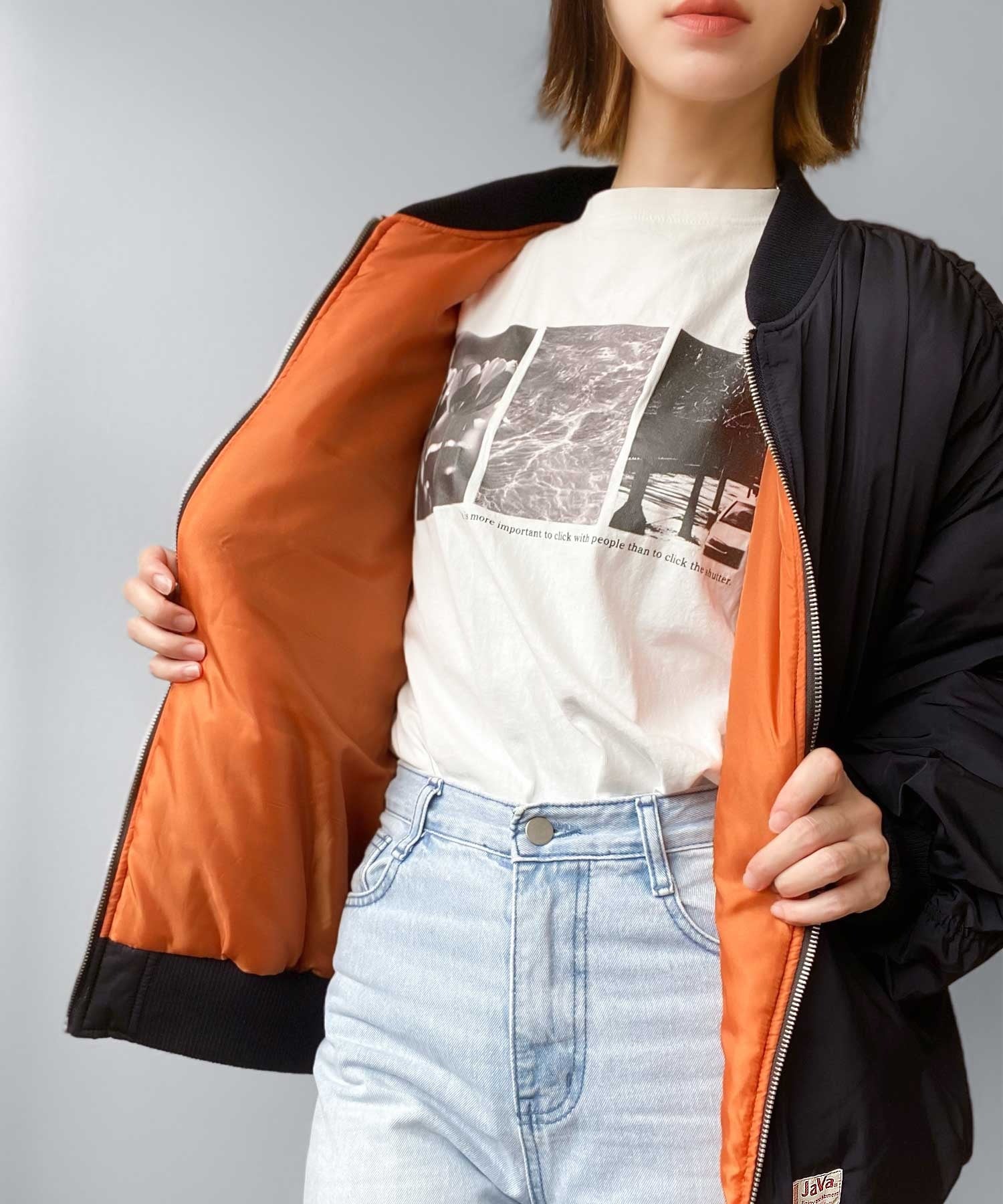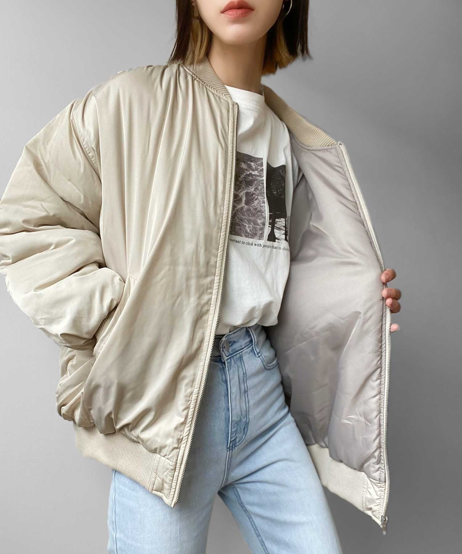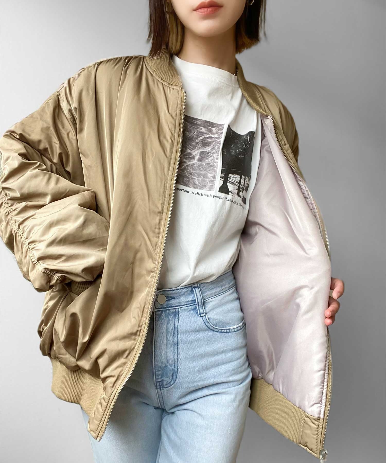 オーバーなサイジングと袖シャーリングが今年らしいMA-1ブルゾン