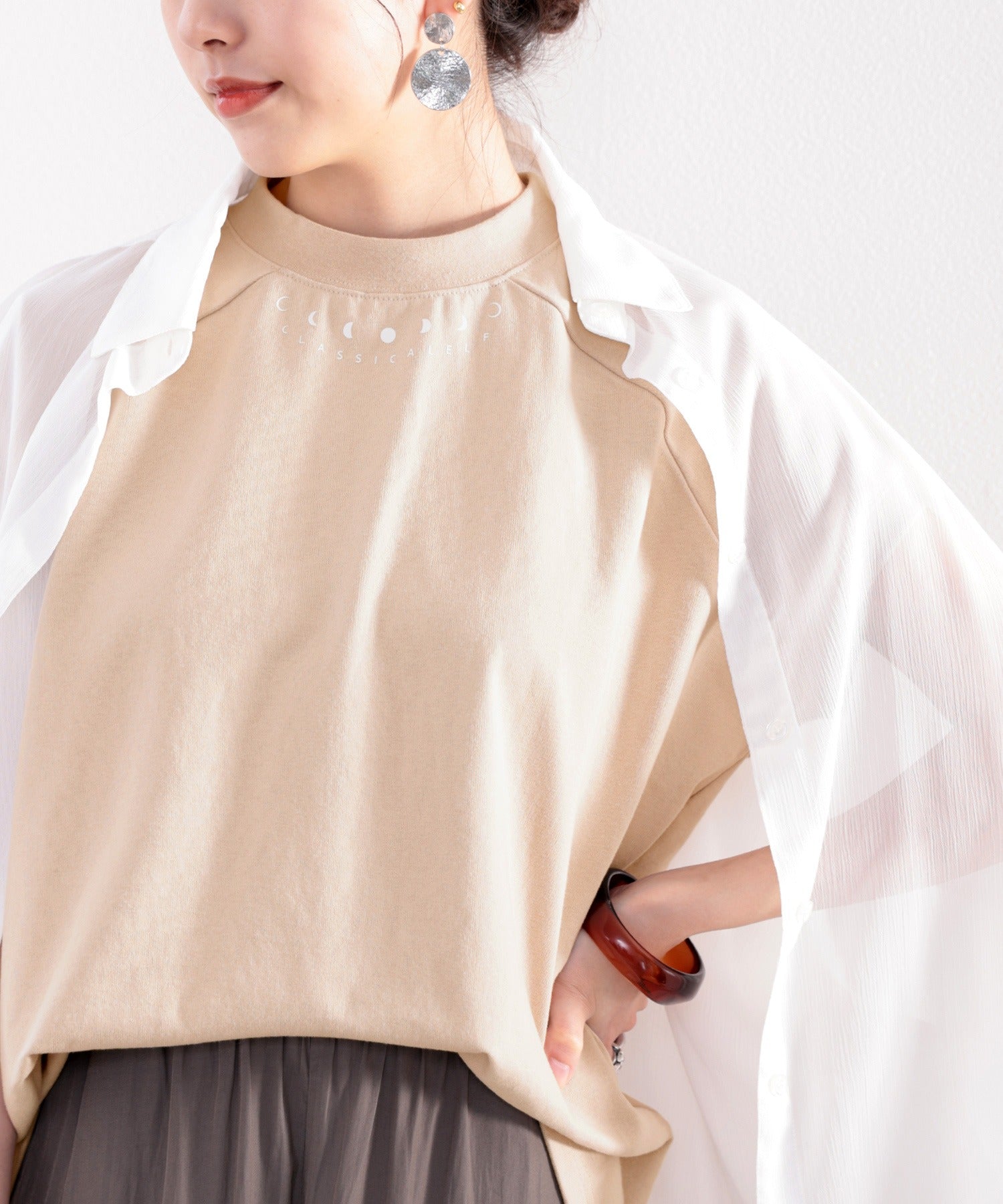 首元の月プリントがアクセントで1枚でもぐっとおしゃれに!