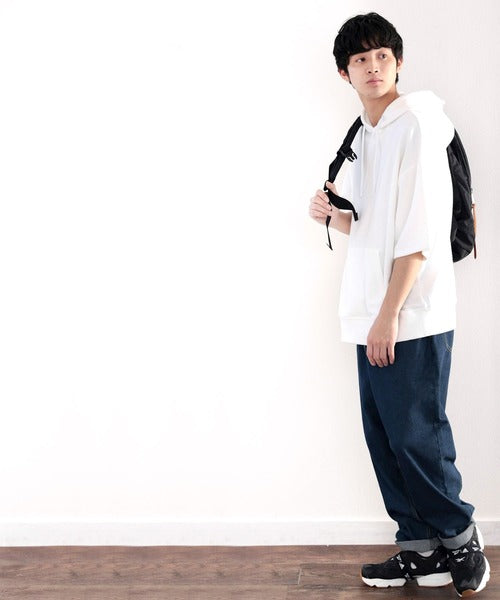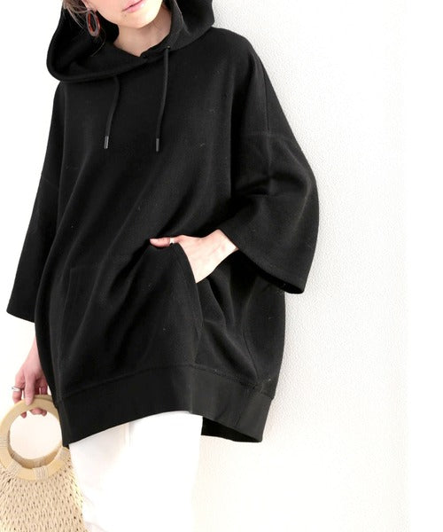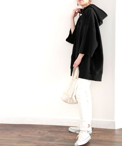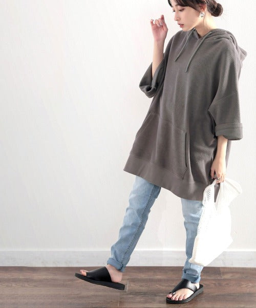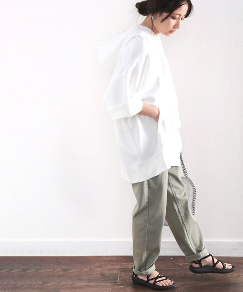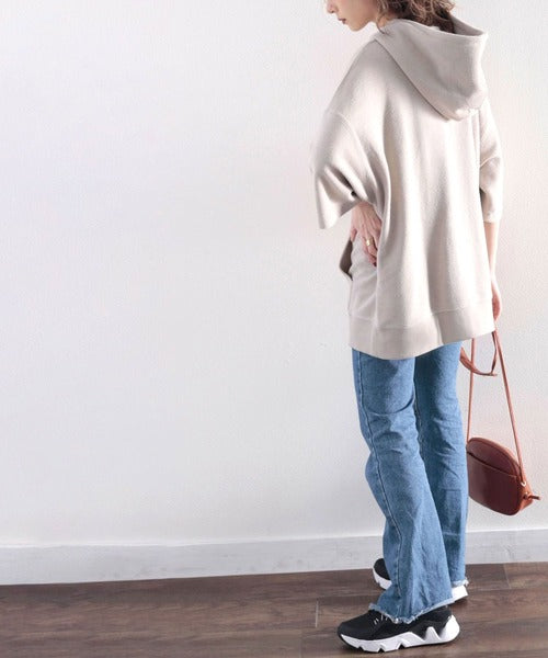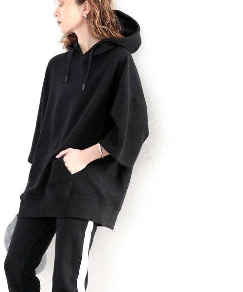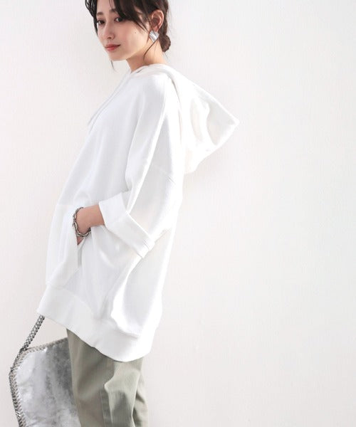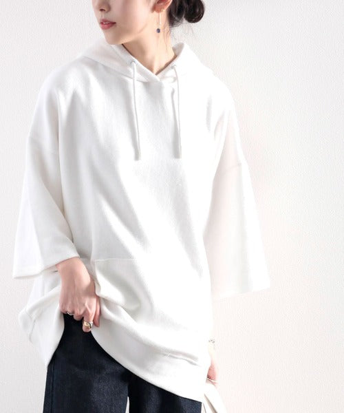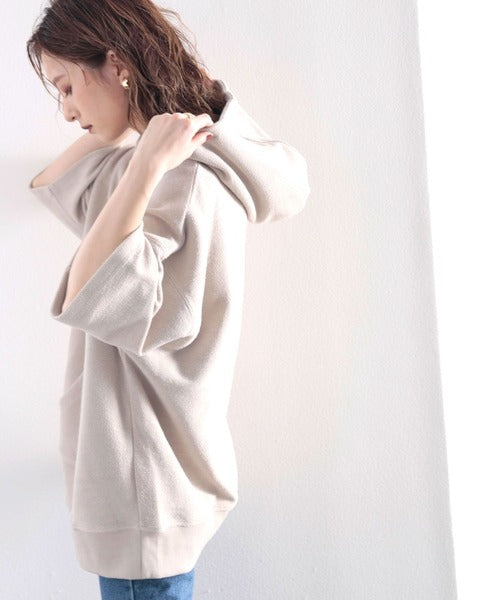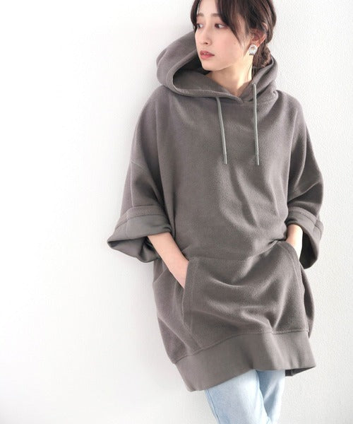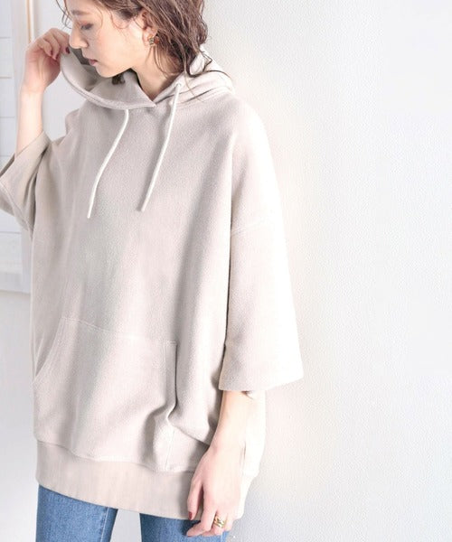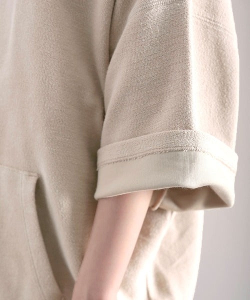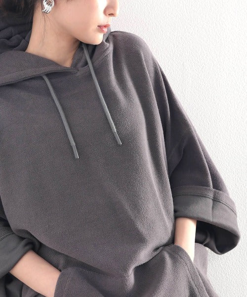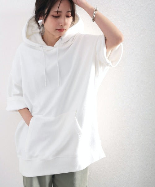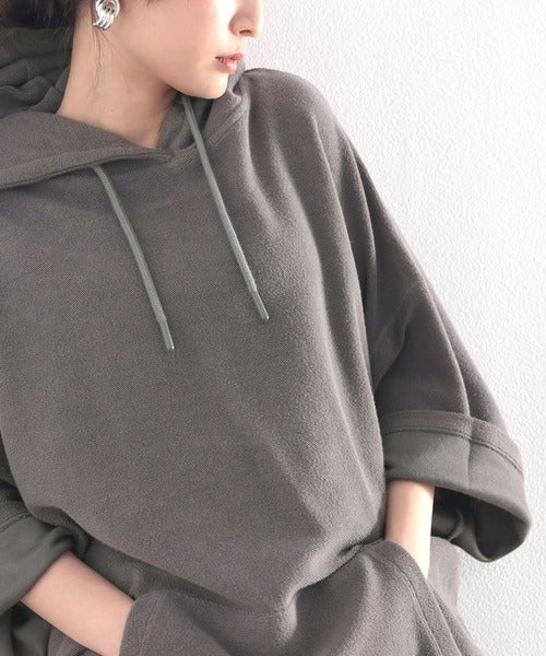 サスティナブル素材、USAコットン&パイル地のプルパーカー。