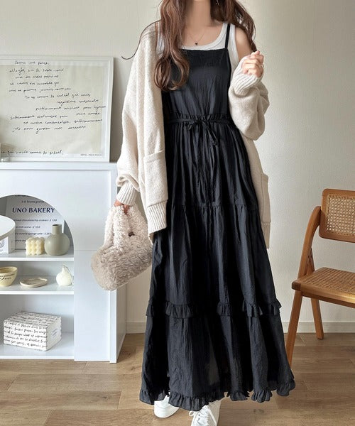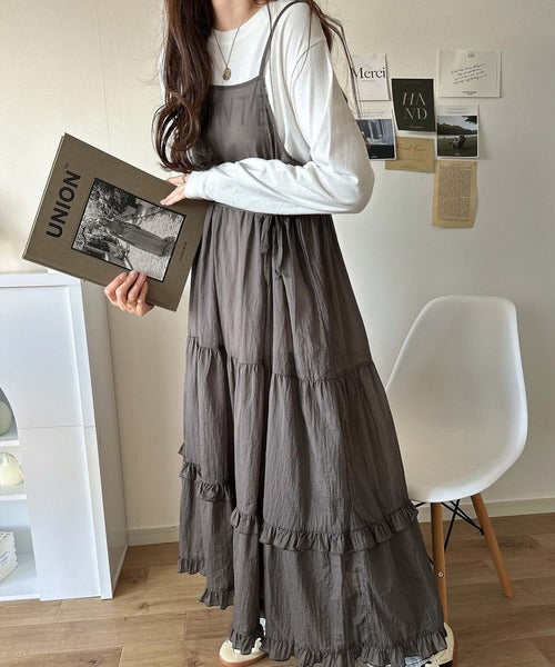 3段ティアードで大人可愛い!シアーフリルキャミワンピース ce1010272