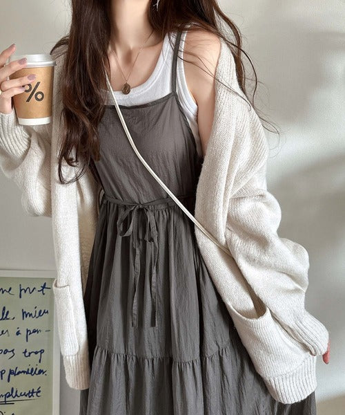 1枚で主役級のキャミワンピなので、インナーはシンプルな