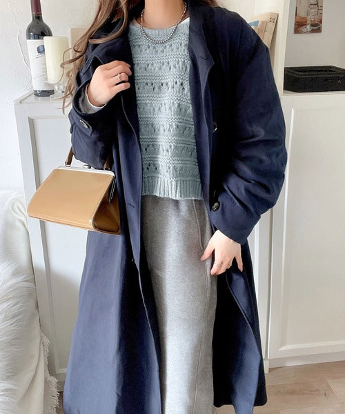 透かし編みが軽やかさを引き立て、重ね着でも圧迫感を感じさせません。