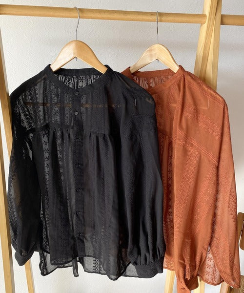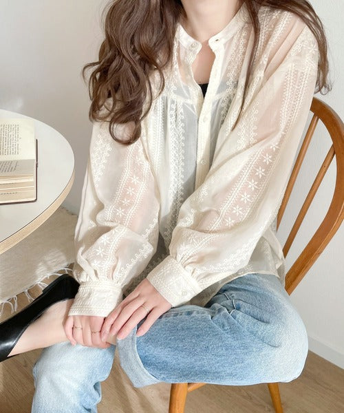ヴィンテージ刺繍。2wayシアーバンドカラーシャツ ce1070033