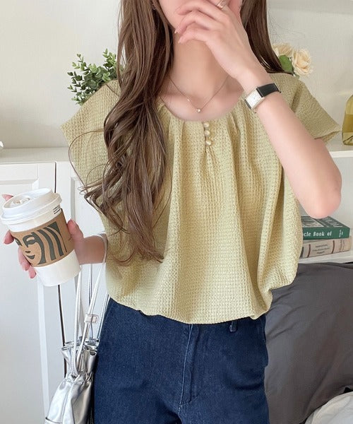 タックデザイン×バルーンシルエットの立体感が魅力のデザインブラウス。