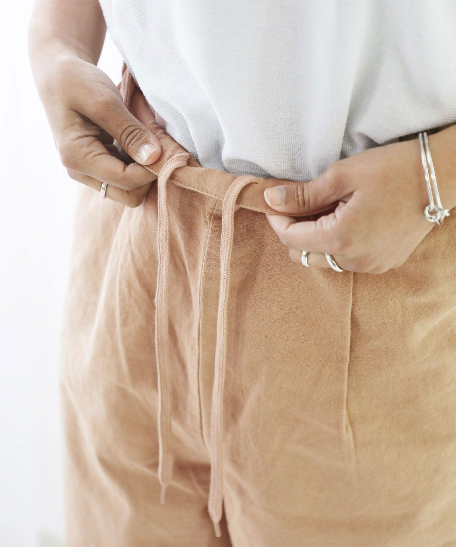・ウエストゴム・紐仕様でベルトいらず。
