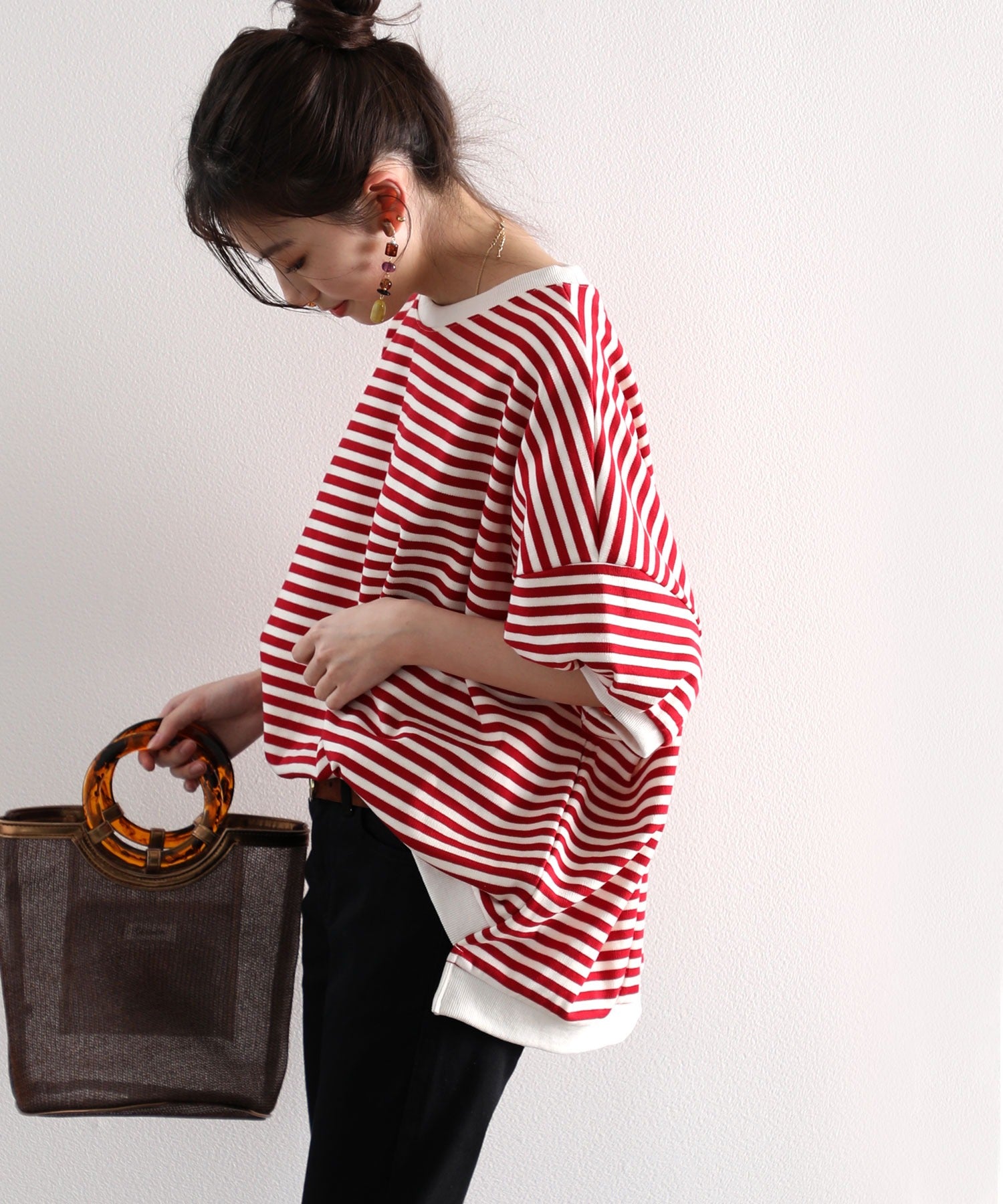 イージーパンツと合わせてリラックスコーデ。