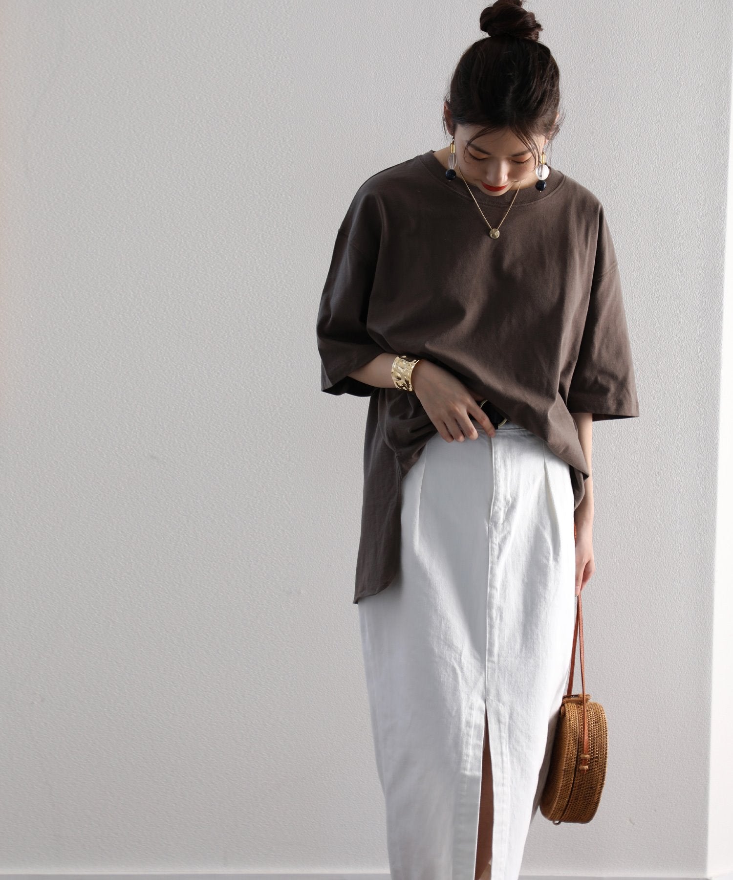ストンと縦に落ちるシルエットは体のラインを拾わないので体型カバー効果も◎