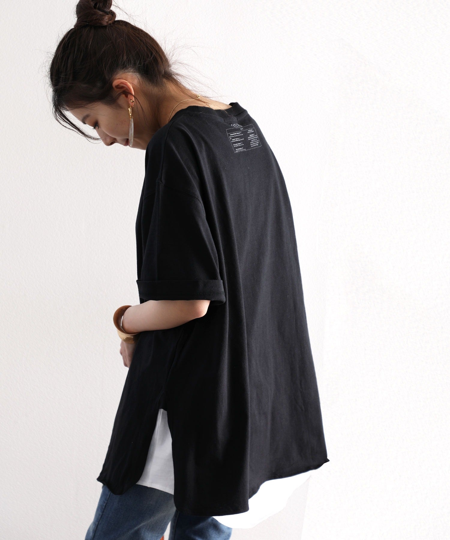 ★大人っぽさ増すバックプリント。サイドスリットロング丈カットソー★