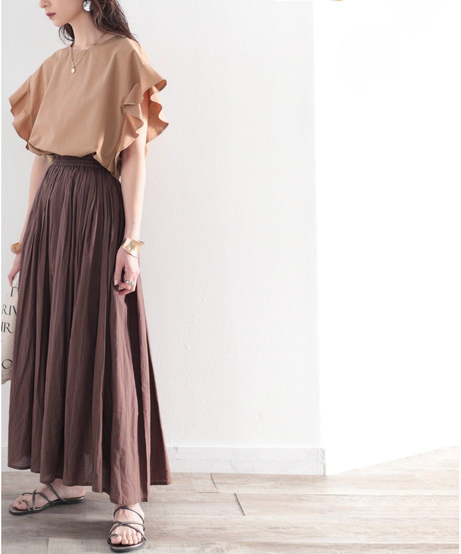 袖のフリルが大人カワイイ。さらりと着られて着回し力抜群ブラウス。