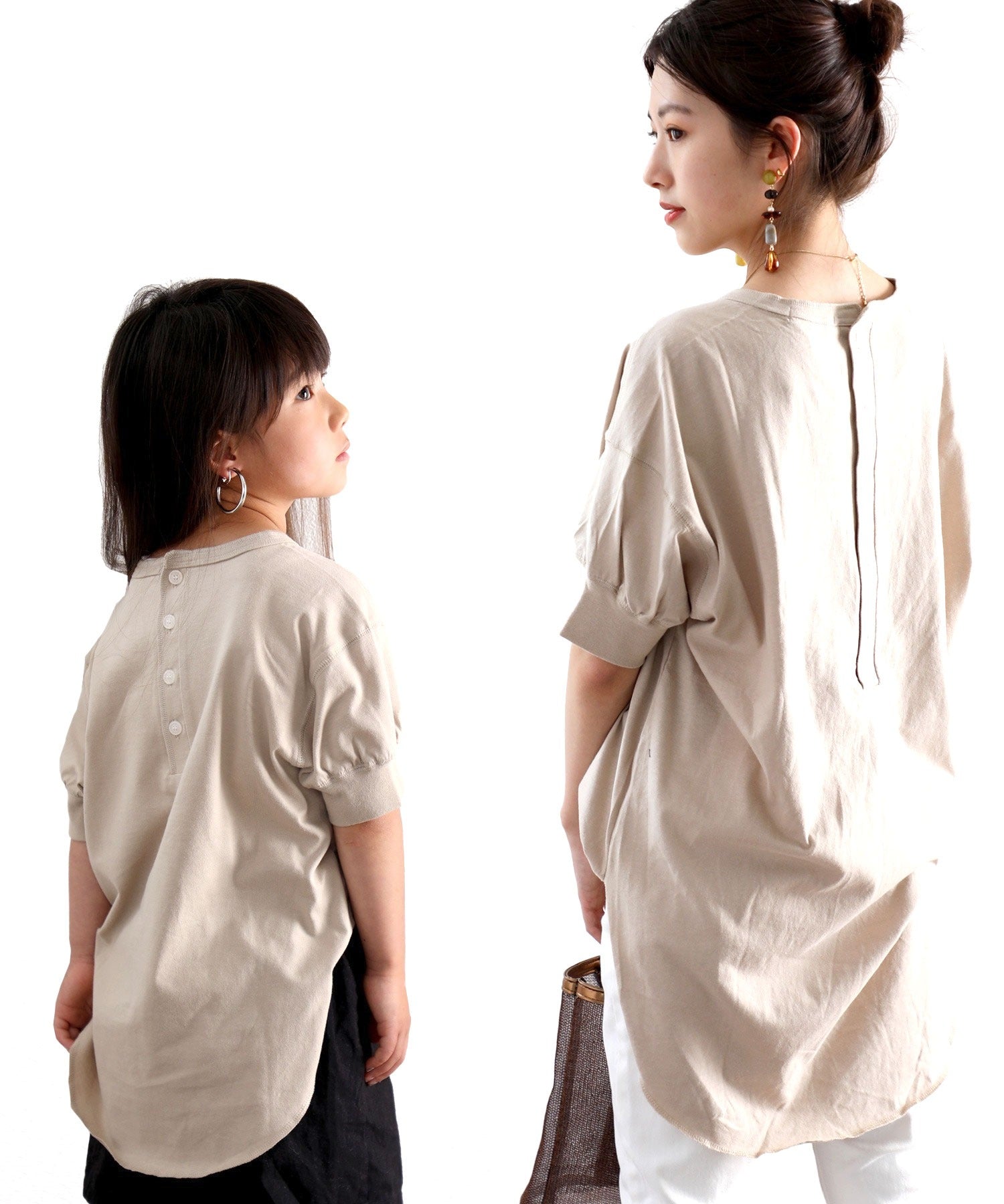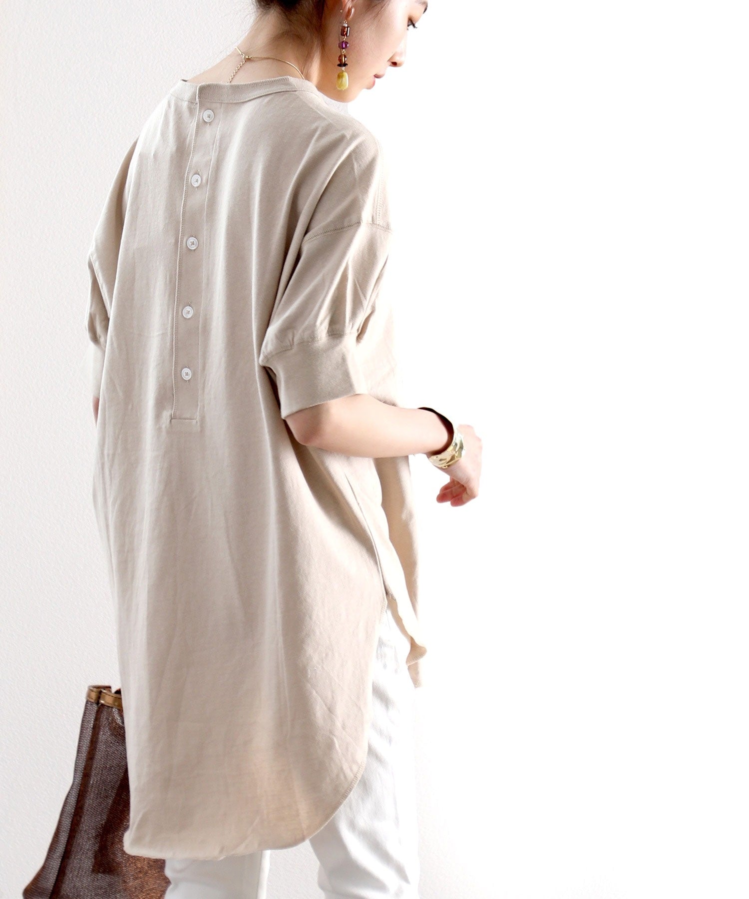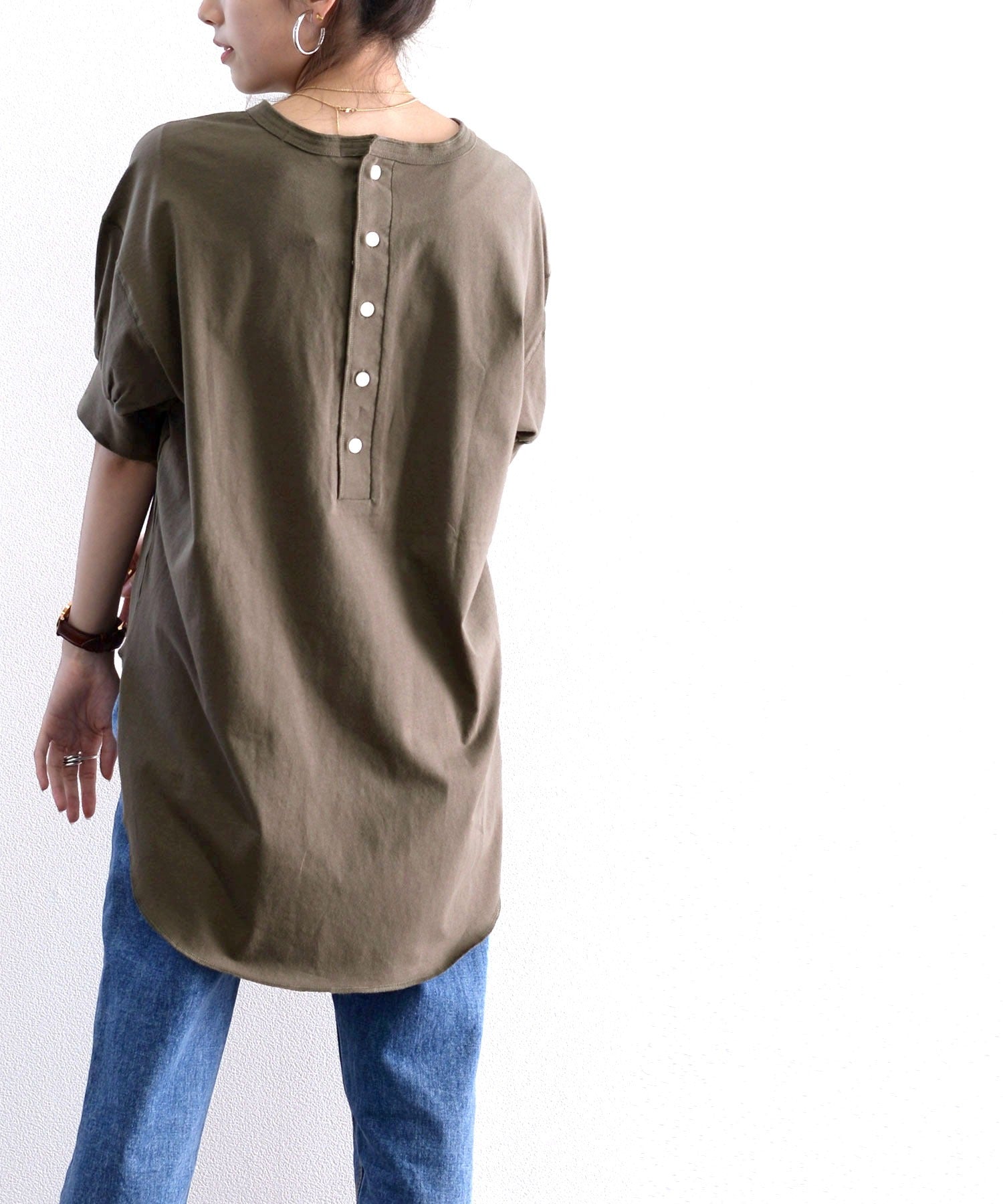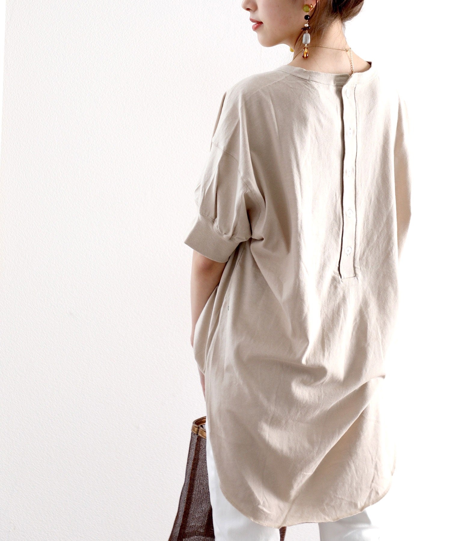 【family+】ゆるっと、大人カジュアル。綿100%半袖バックヘンリーチュニック cl5004
