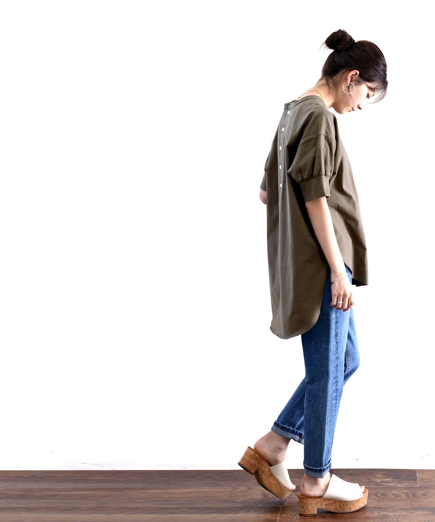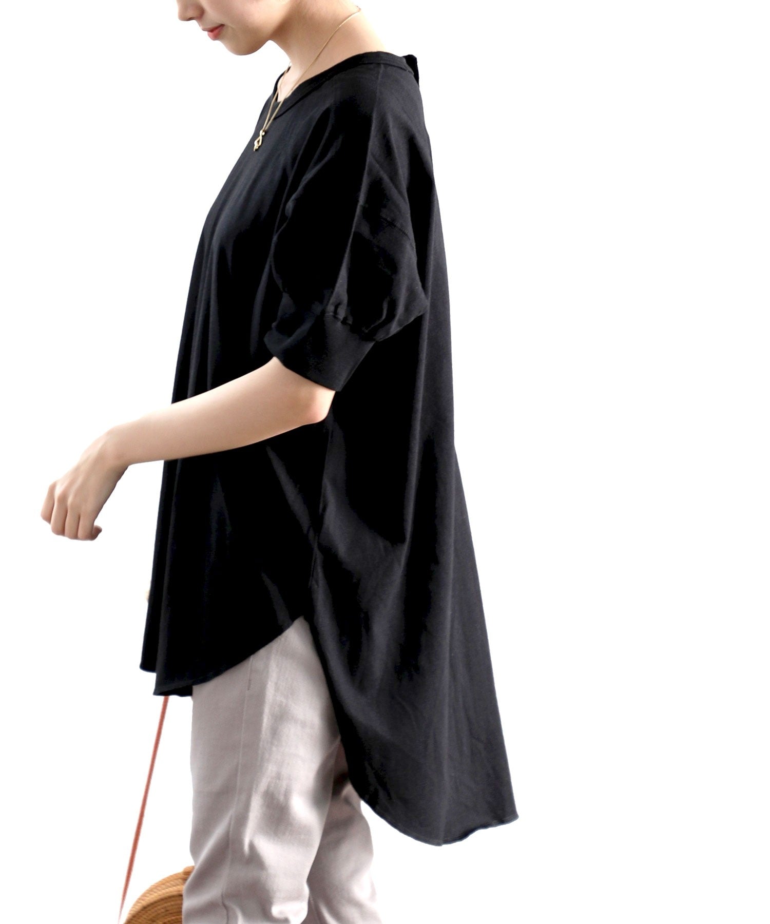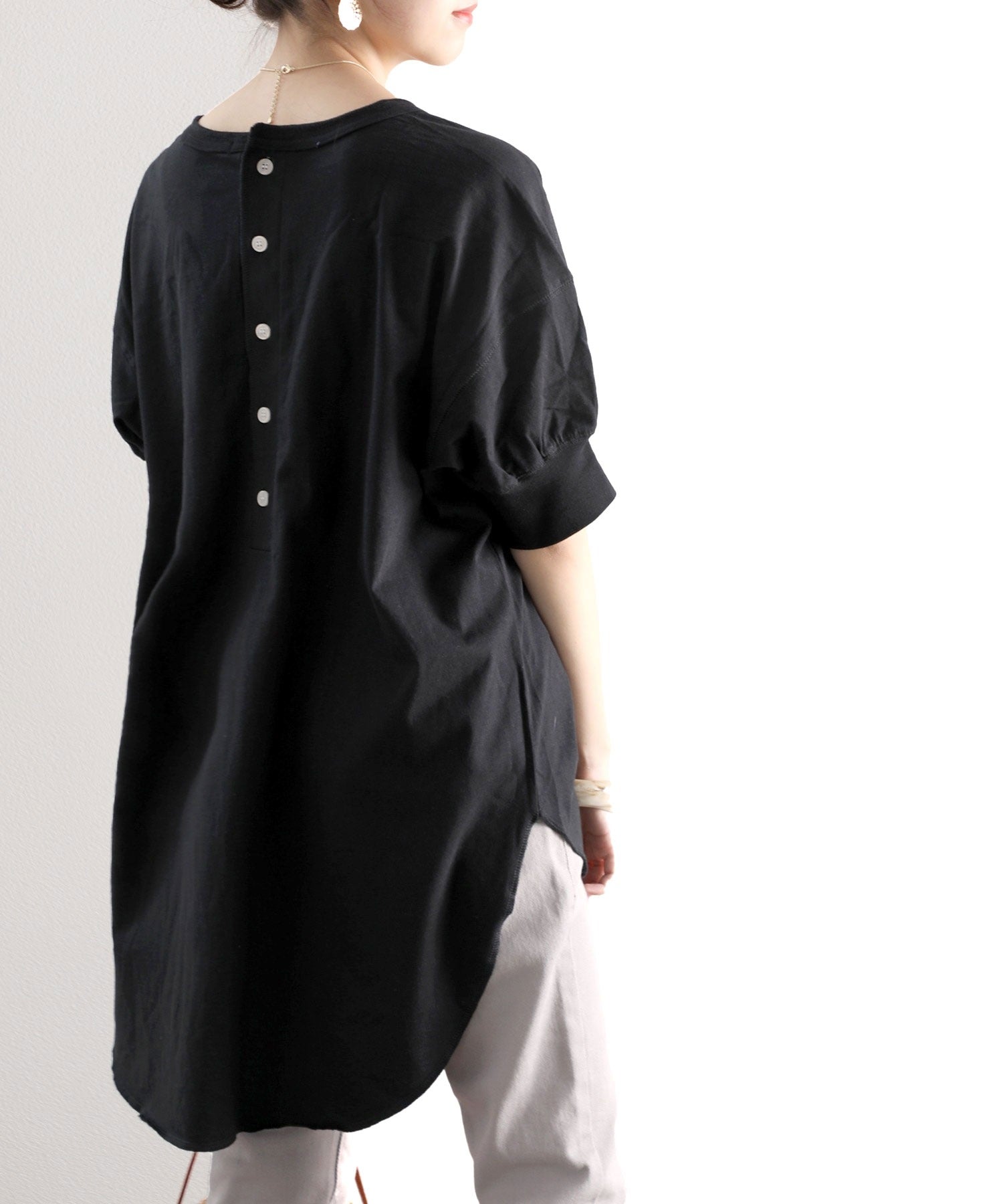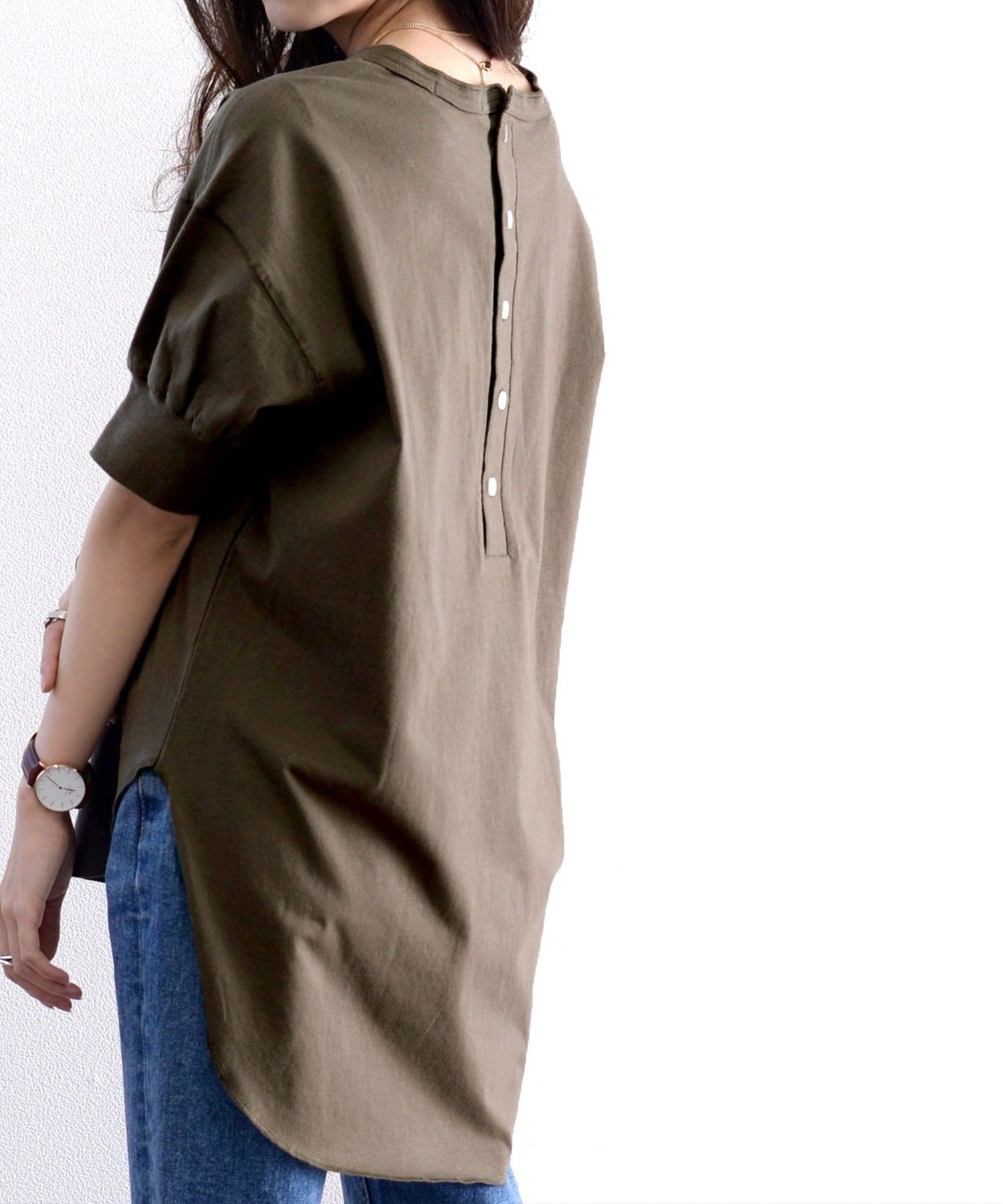 【family+】ゆるっと、大人カジュアル。綿100%半袖バックヘンリーチュニック cl5004