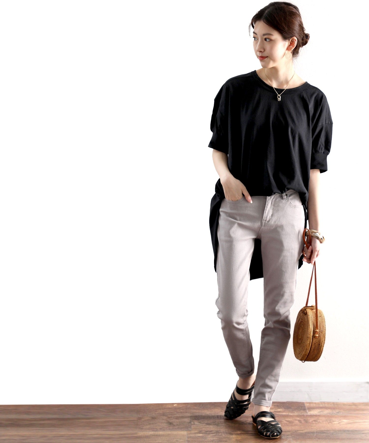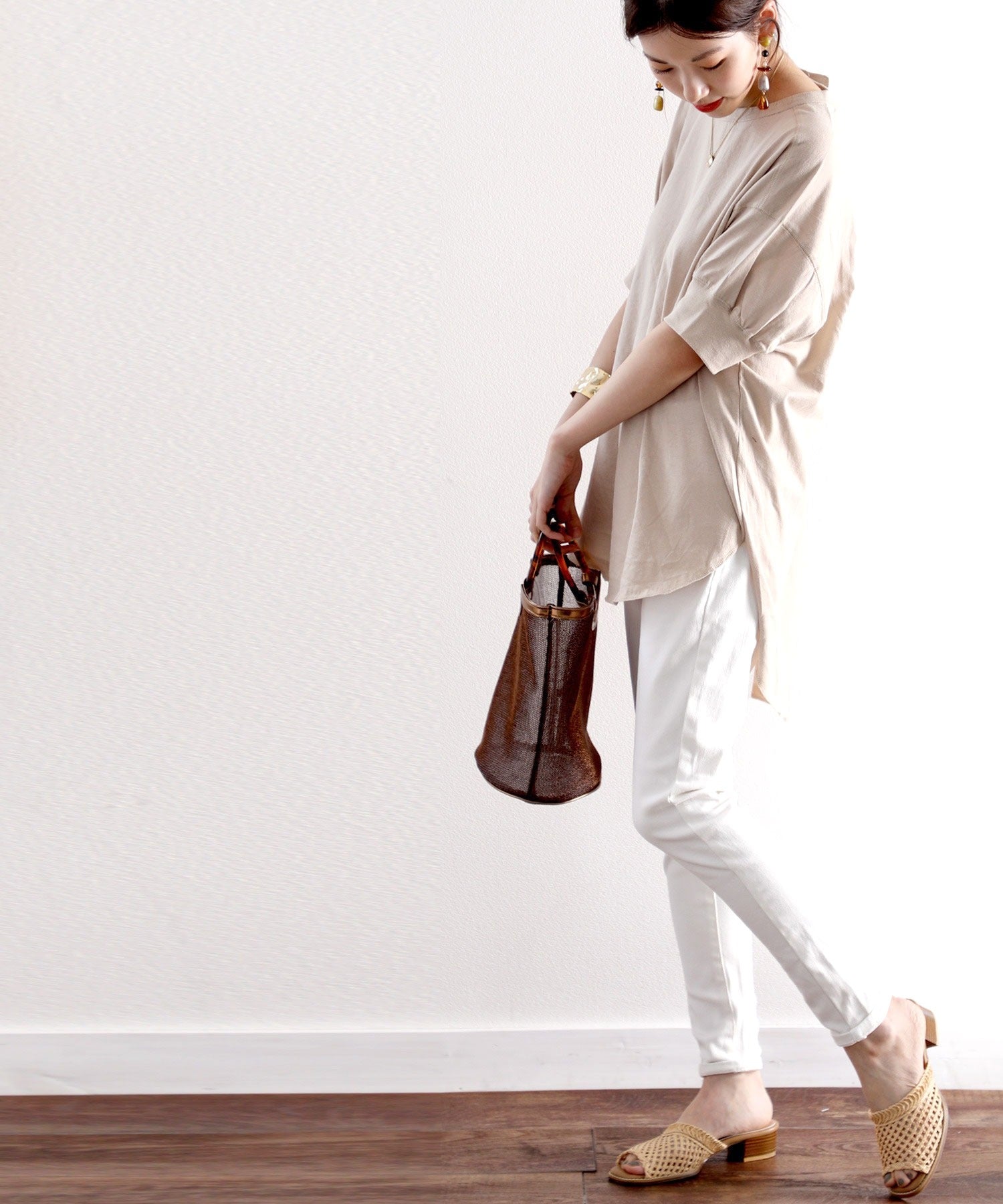 ビッグシルエットなので、スキニーやテーパードパンツなどの細身のパンツと合わせると、