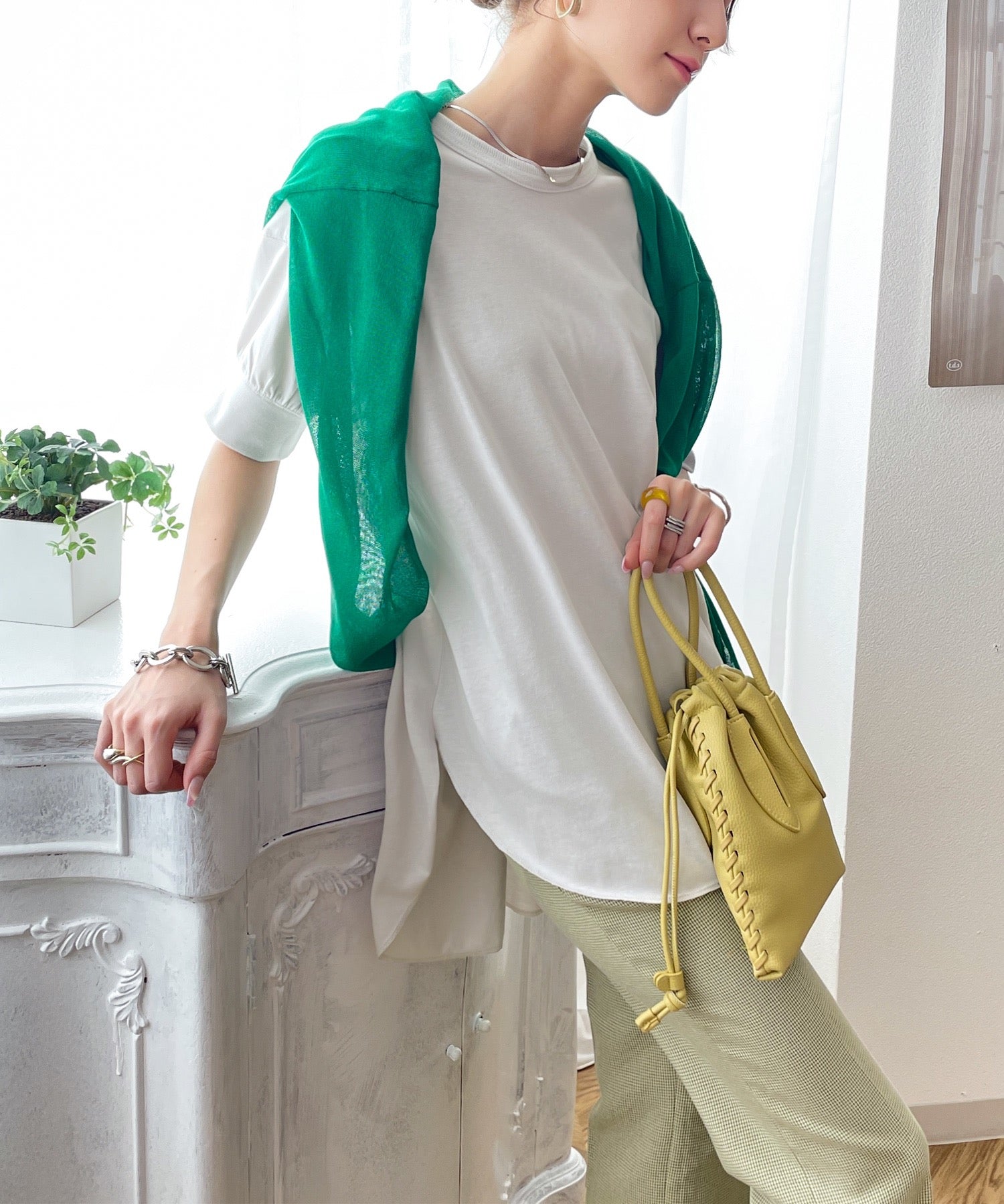 ・リブで仕上げた半袖デザインで二の腕をカバーし華奢見せ