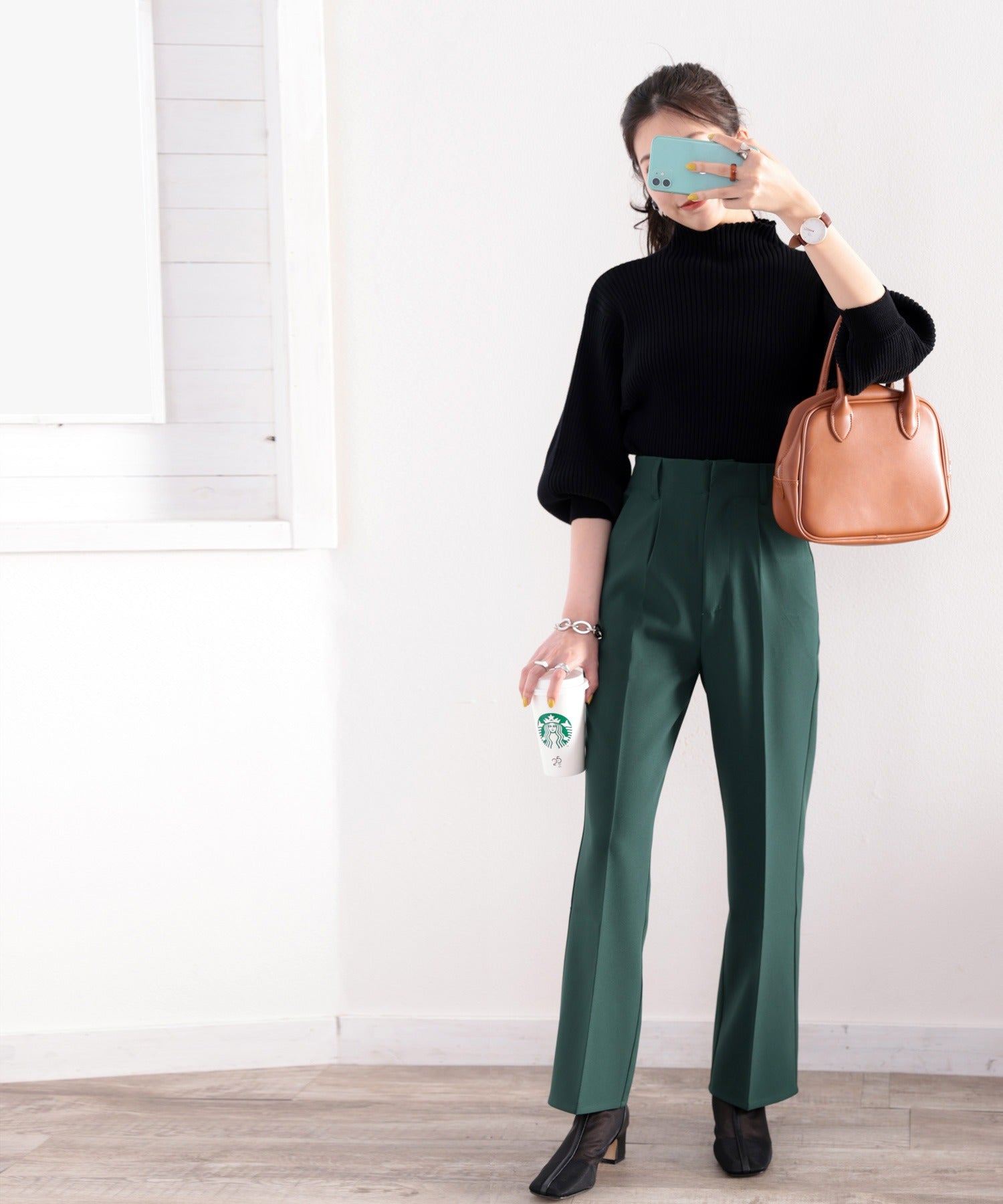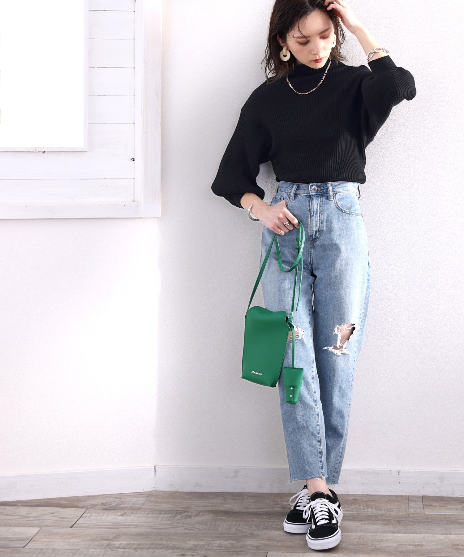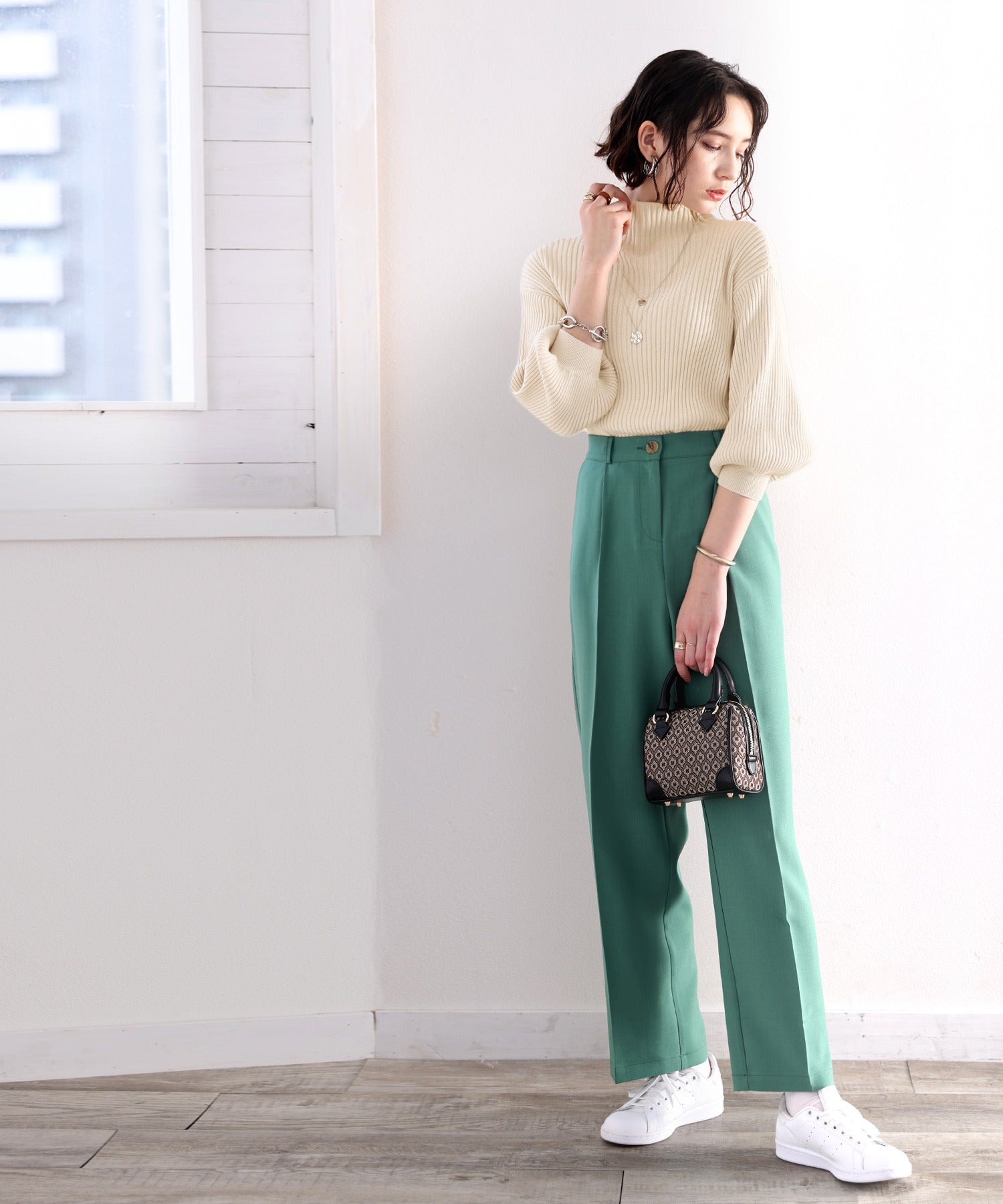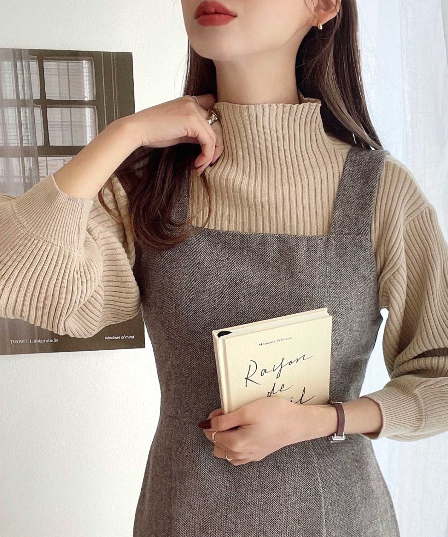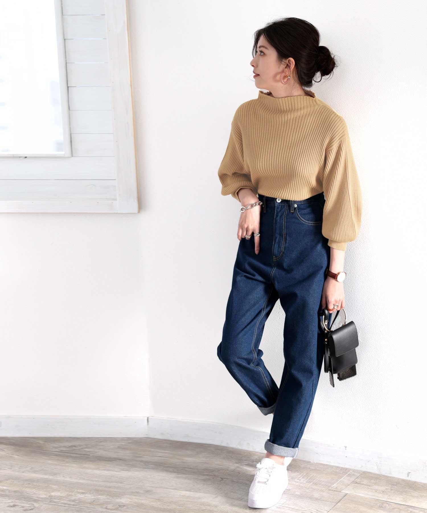 【family+】柔らか綿100%。袖ぽわん、ボトルネックリブニット cl7004