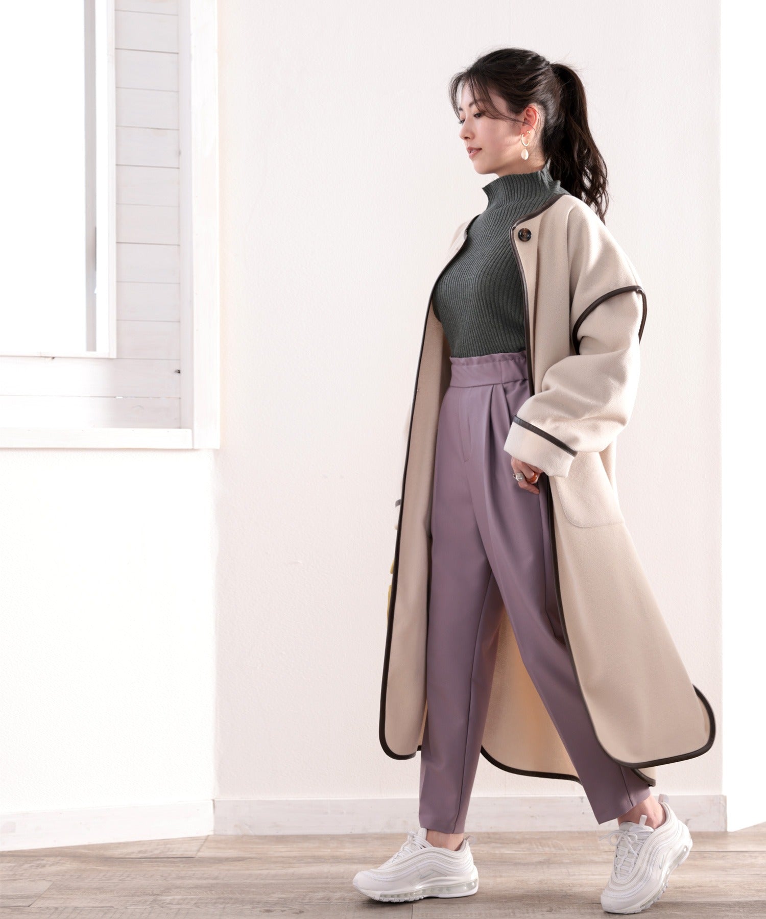 ボトル状のハイネックで首回りからの冷気をシャットアウトしてしっかりあったかく。