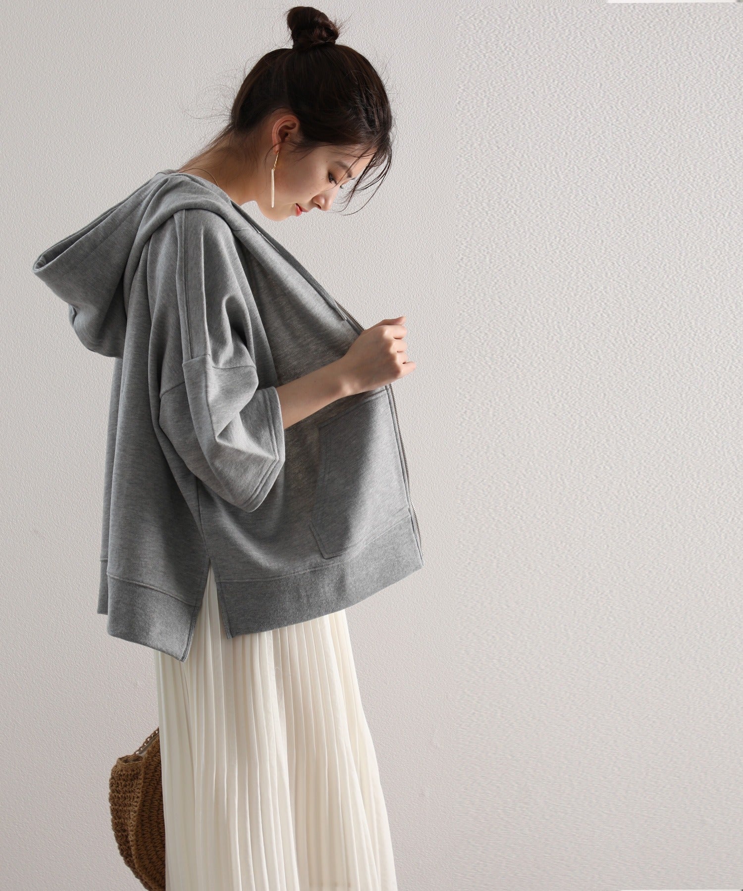 ちょっとフードを立てて、ダボっとレディライクに楽しみたい大人のジップパーカーです。