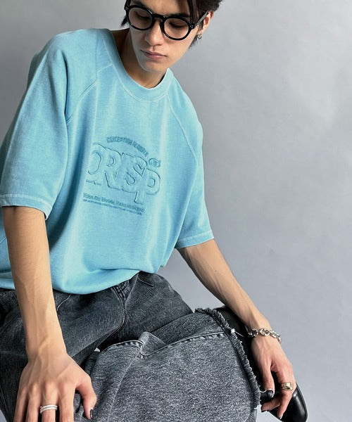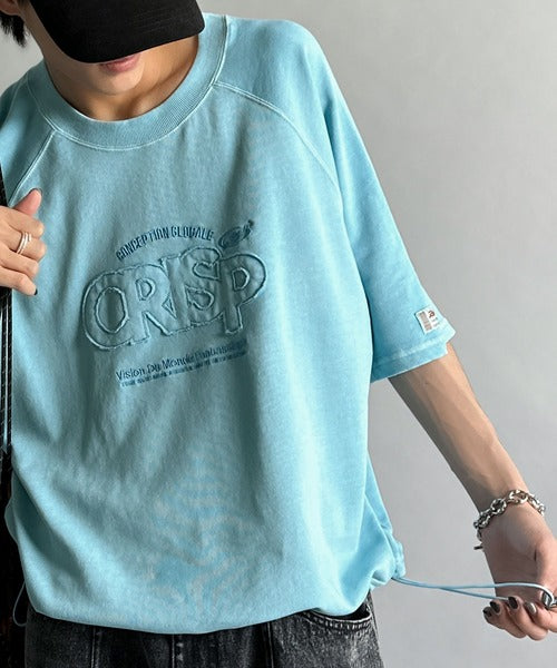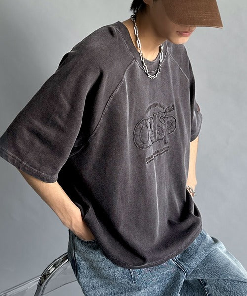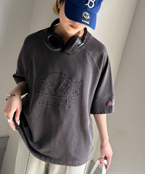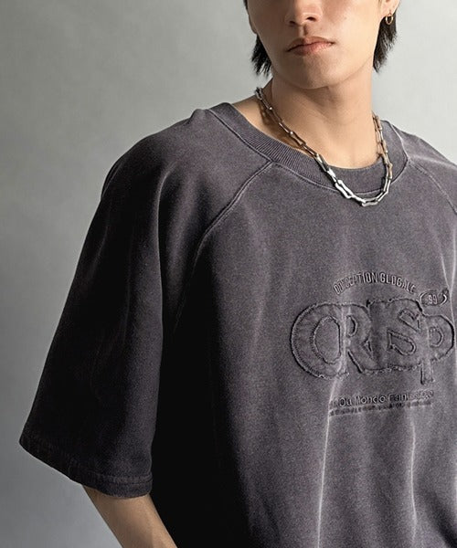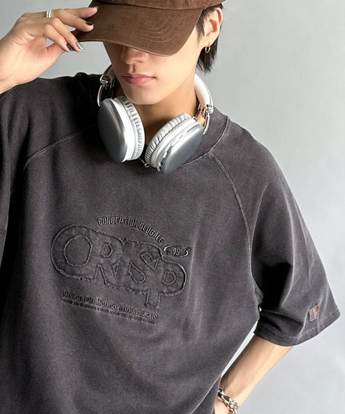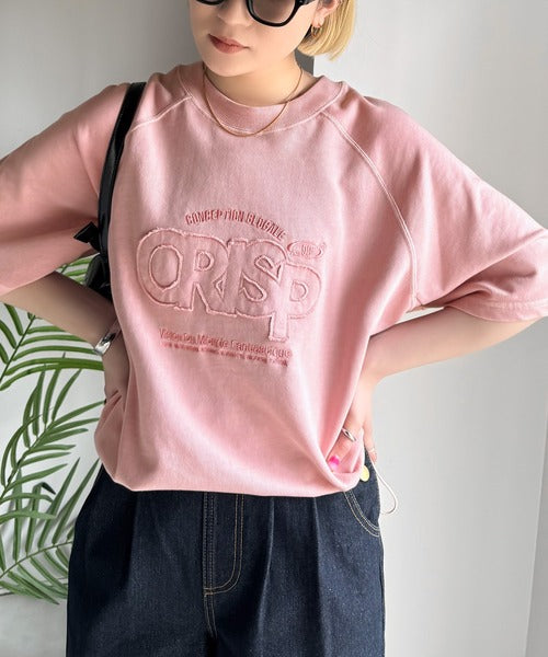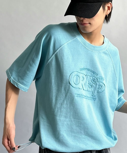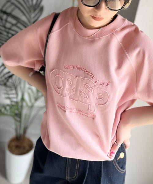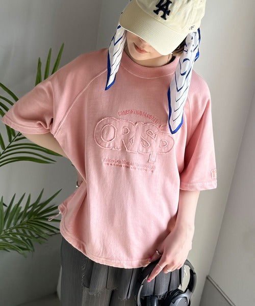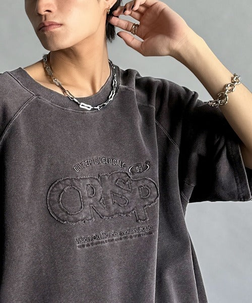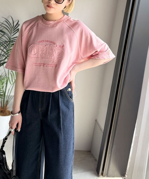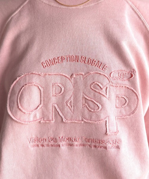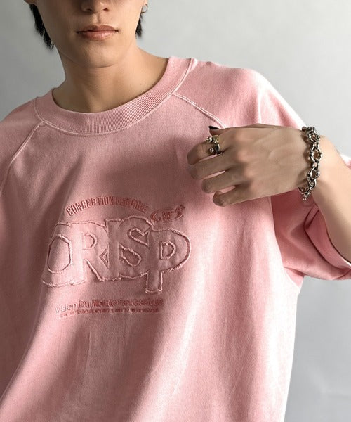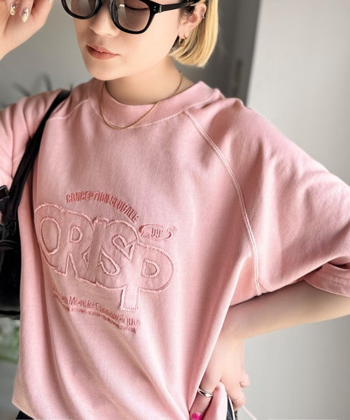 薄手のスウェット生地と切りっぱなしのロゴが組み合わさり、