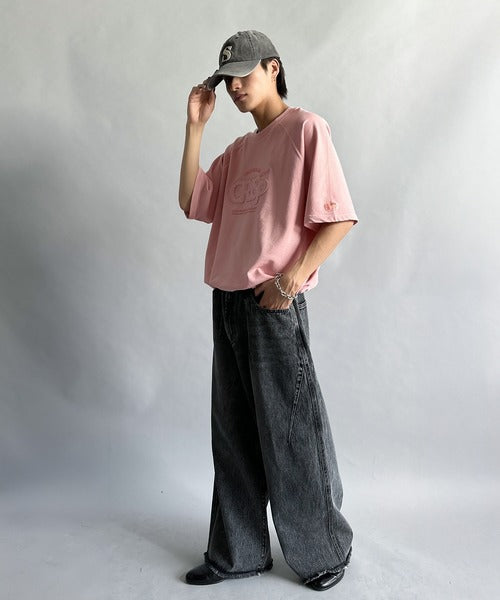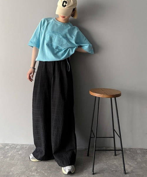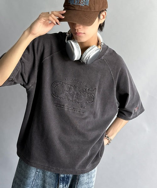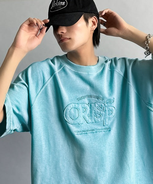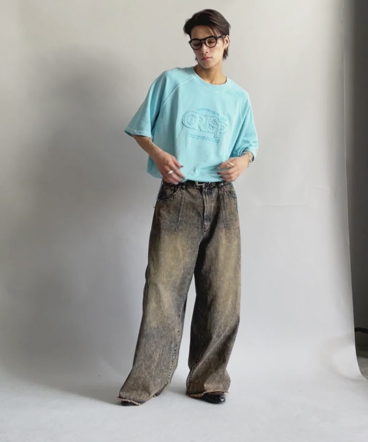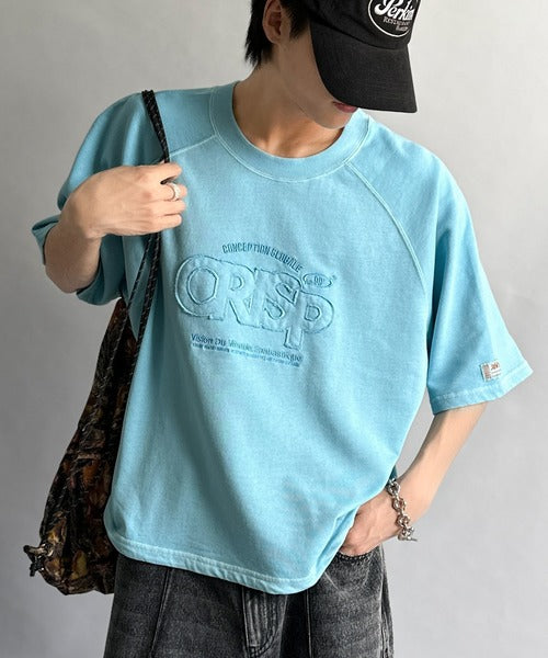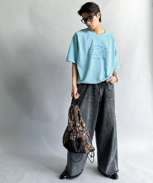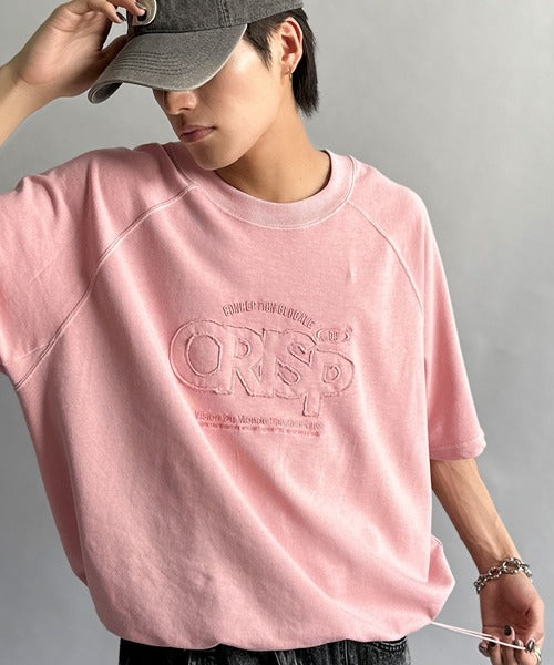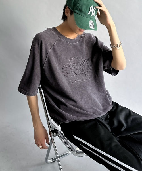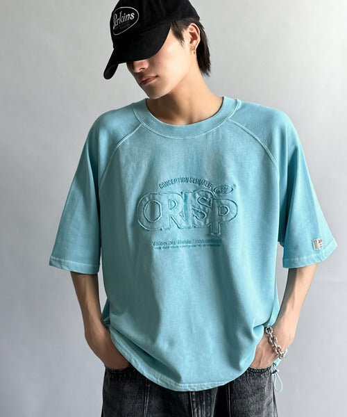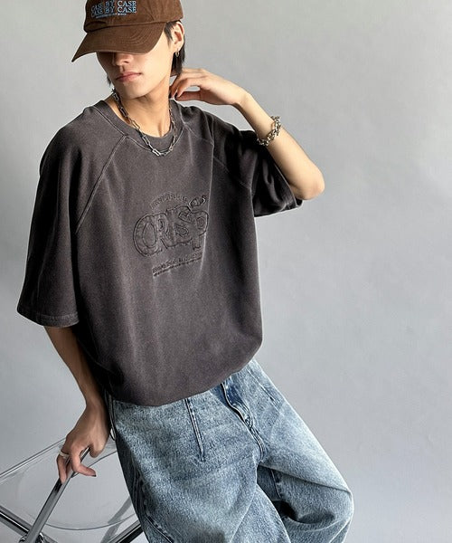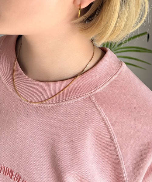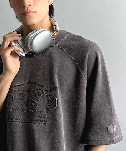 薄手のスウェット生地と切りっぱなしのロゴが組み合わさり、