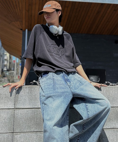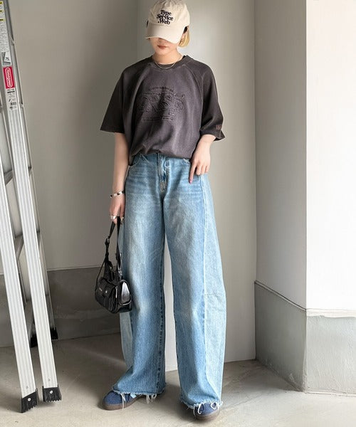 《JaVa ジャバコラボ》裾はドロストでお好みのシルエットに。ヴィンテージライクな半袖ロゴスウェット jm1029126