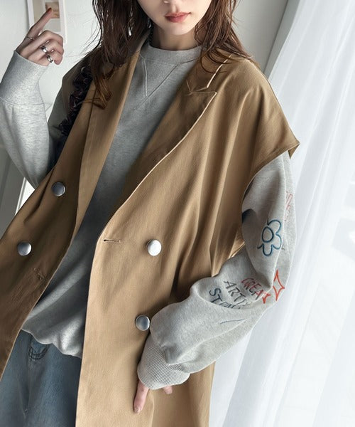 《Javaジャバコラボ》洗練された魅力。綿100%リバーシブル2way裾ドロストダブルテーラードベスト jv1010332