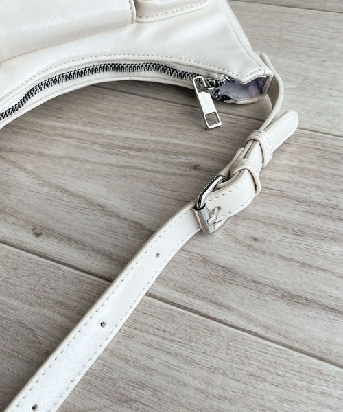 長さ調節が出来る華奢なバックルベルト使いのショルダーもスタイリッシュなポイントになります。