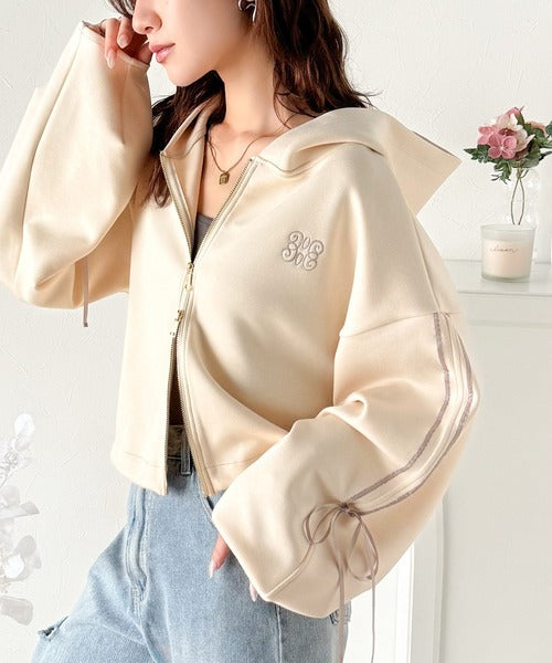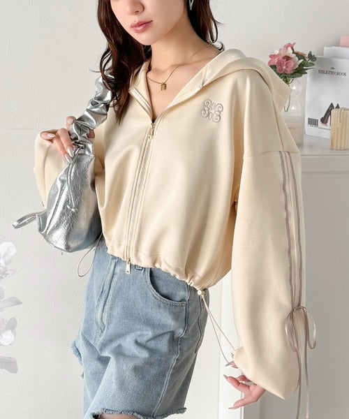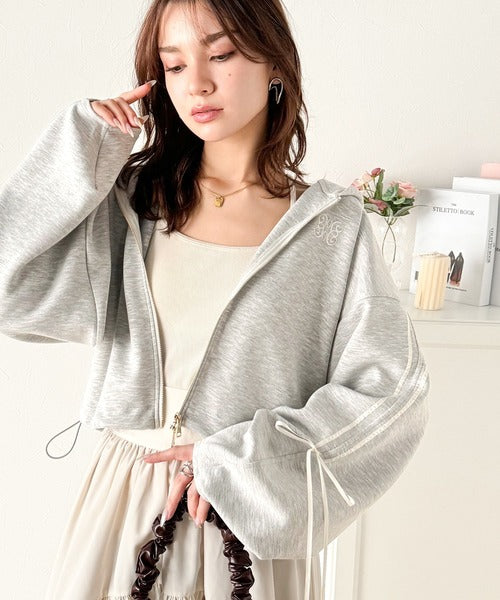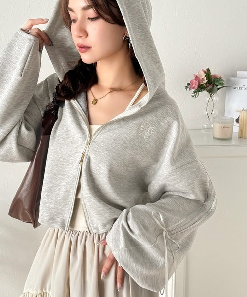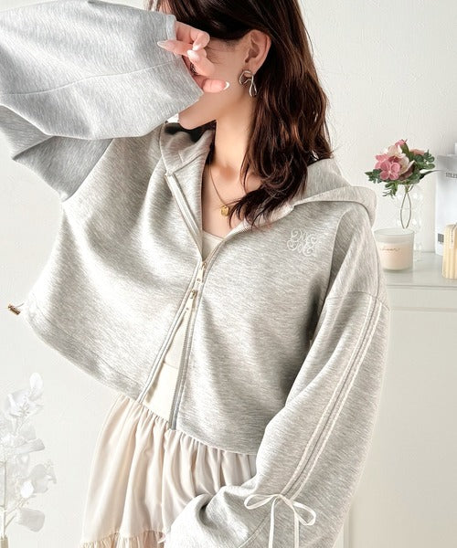 【mily bilet】大人のこなれ感が魅力。胸刺繍ダブルジップクロップドダンボールパーカー(ショート丈) mi1329011