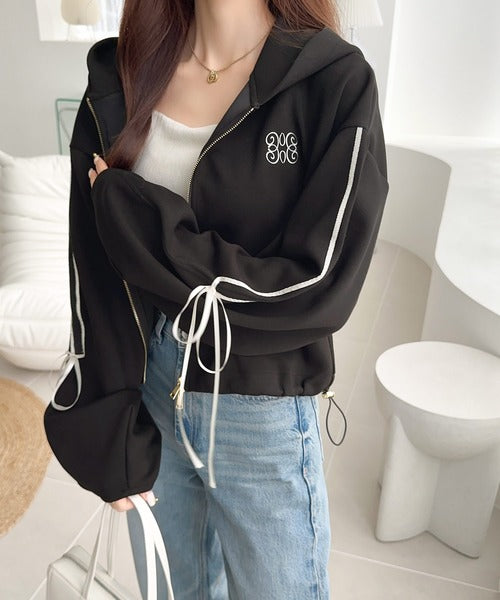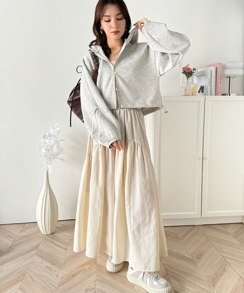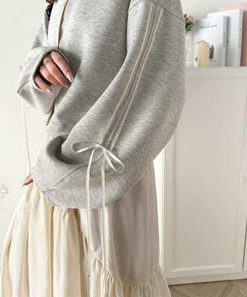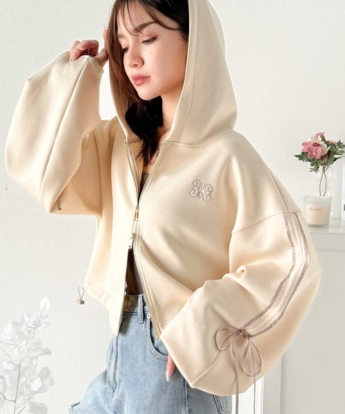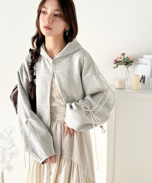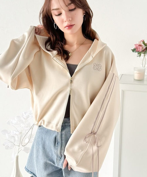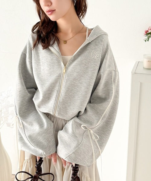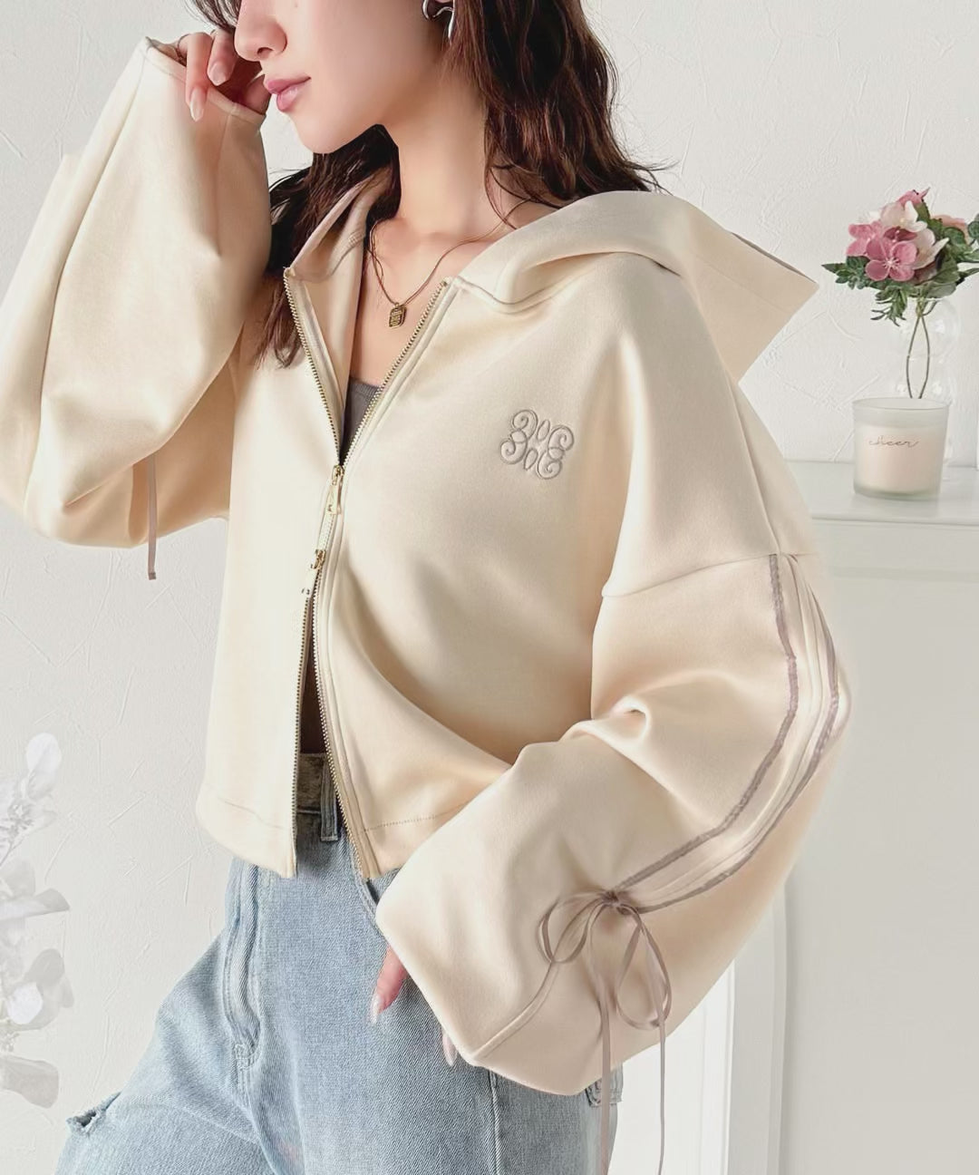 ・ガーリーやエレガントに合わせやすいZIPパーカー。