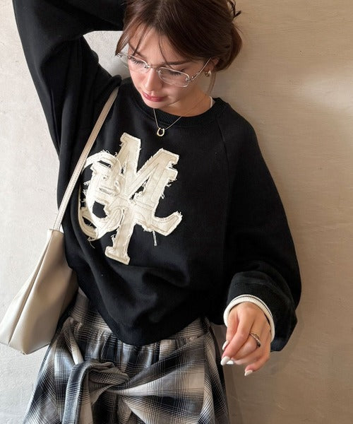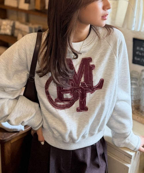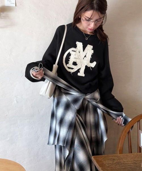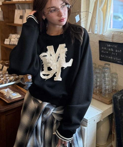 【mily bilet】ディティールの遊び心に一目ぼれ。デニムフリンジワッペン裏起毛ショート丈プルオーバー mi1329066