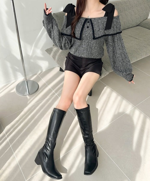 リボンは自分で結ぶスタイルなので、好みに合わせて肌見せの具合を調整可能◎