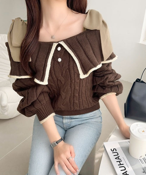 【mily bilet】秋は”思いきり女の子っぽく”、が気分。大きめリボン甘めお姉さんスタイル。肩リボン使いケーブル編みニット mi1359022