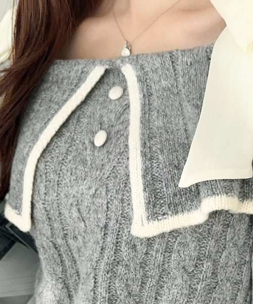 ざっくりとしたケーブル編みが温かみを与え、ガーリーなコーディネートにぴったり。
