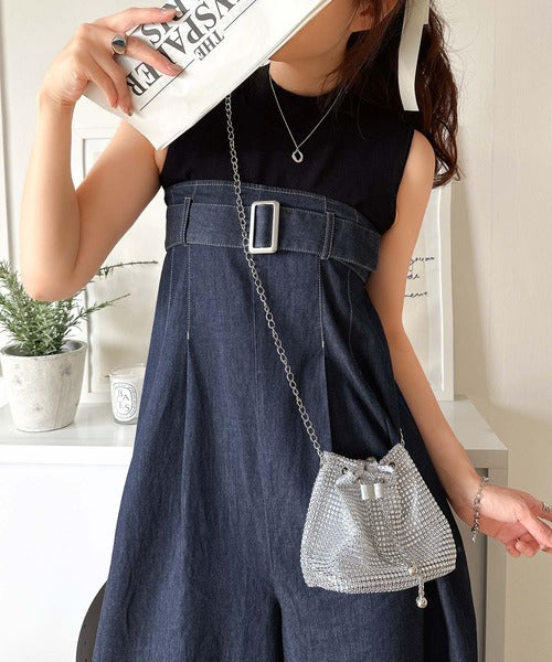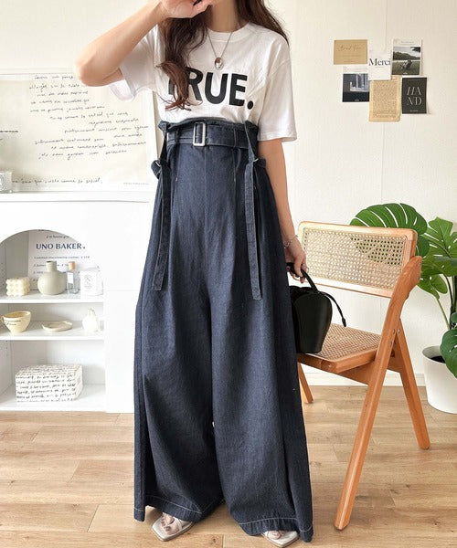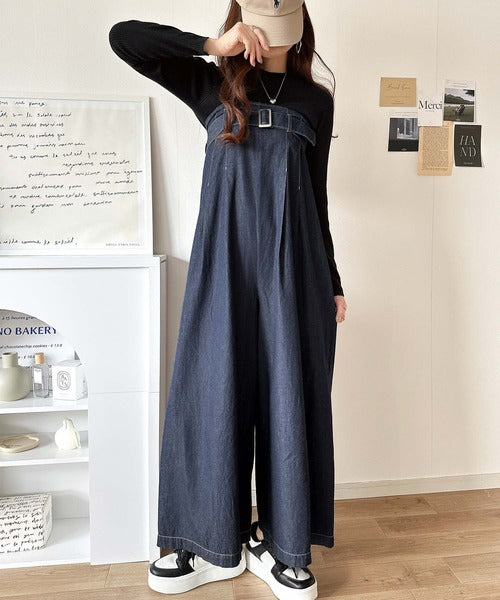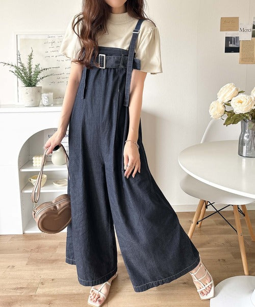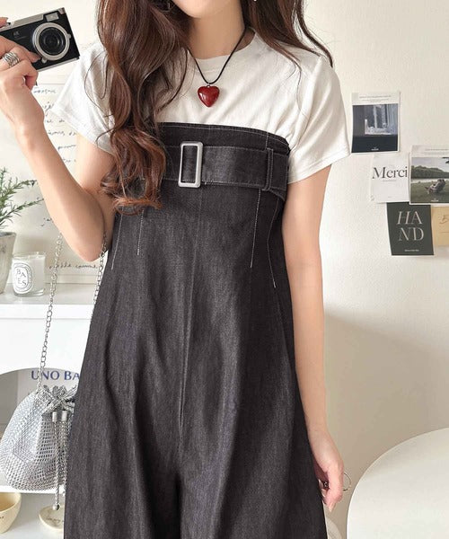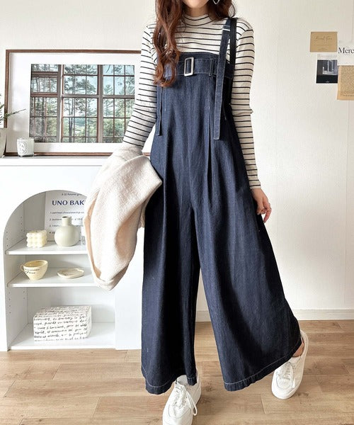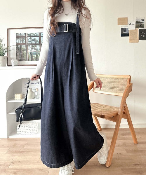 2WAYで楽しむ!旬シルエット。太ベルトライトオンスデニムサロペット ce0940240