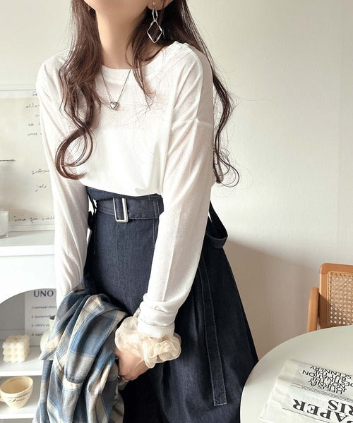 バストの太ベルトがアクセントに、程よいルーズ感がこなれた印象に。