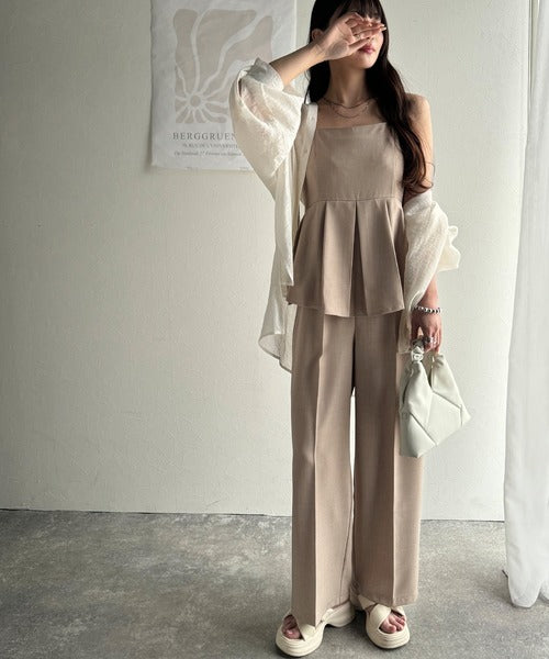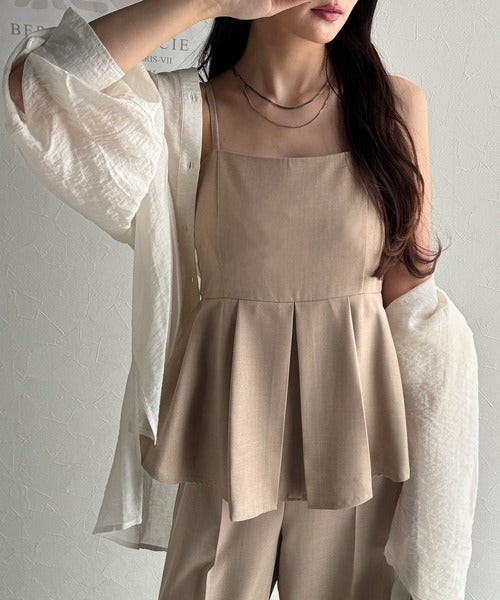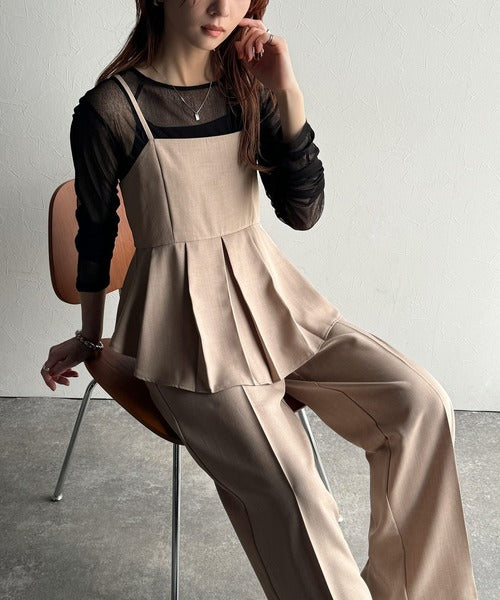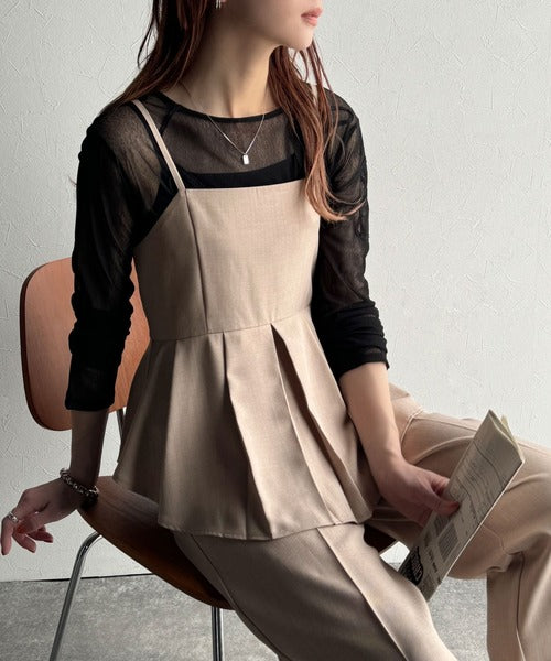 シアーブラウスやジレを重ね着すると洗練された印象をプラスできますよ♪