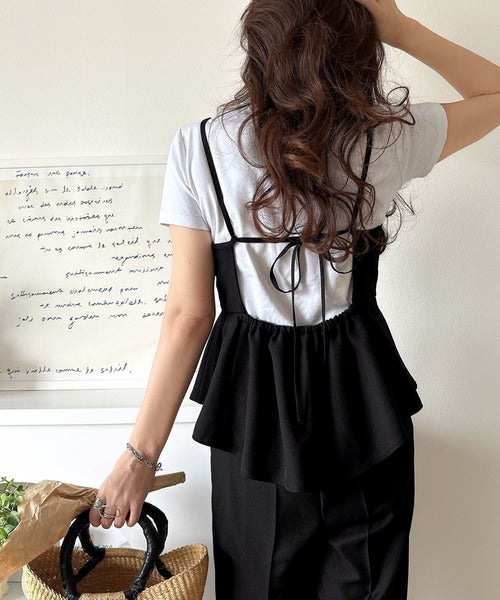ナチュラルに映える!バックリボンキャミフレアサロペット ce0940241