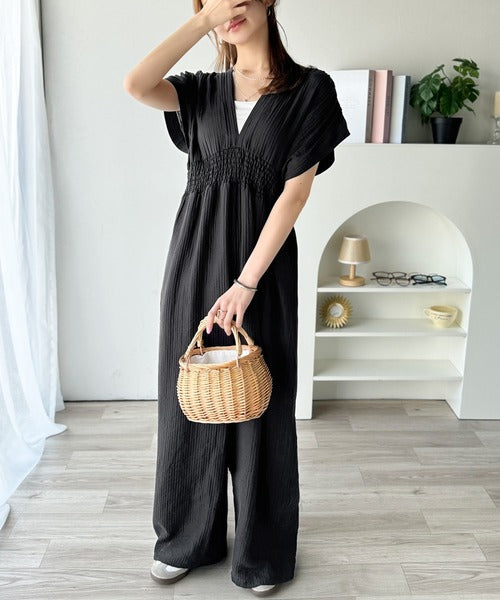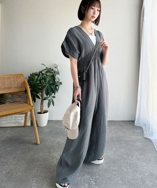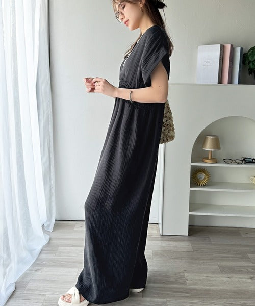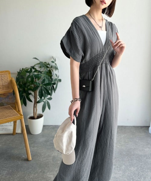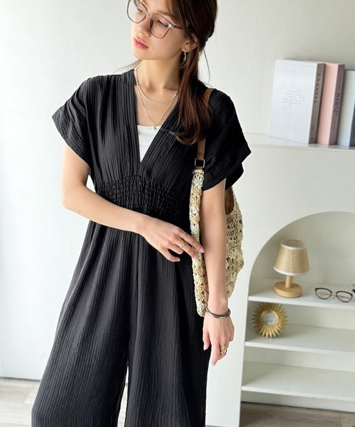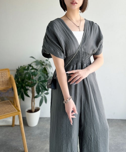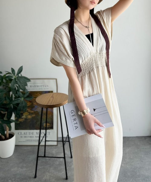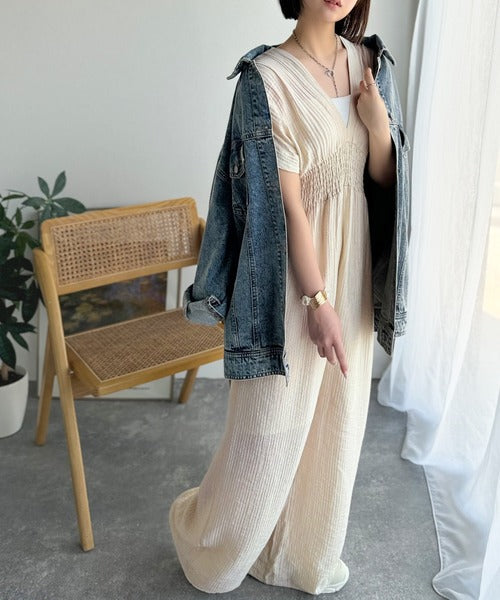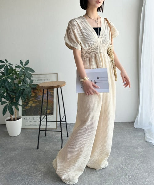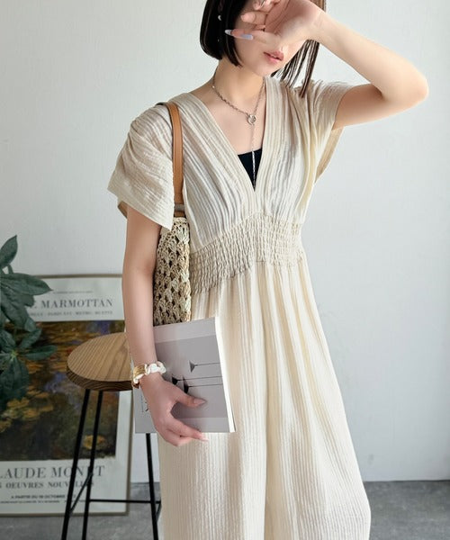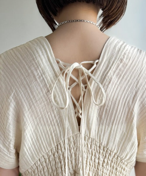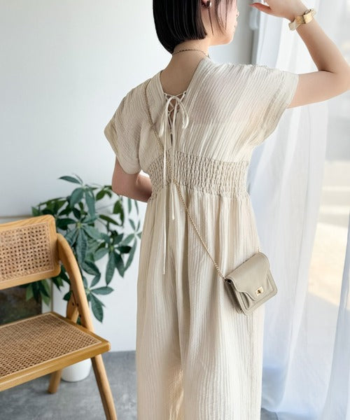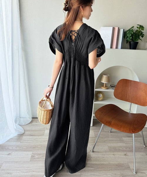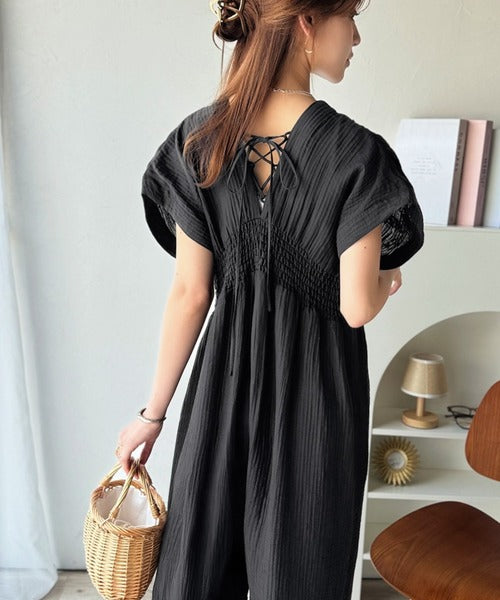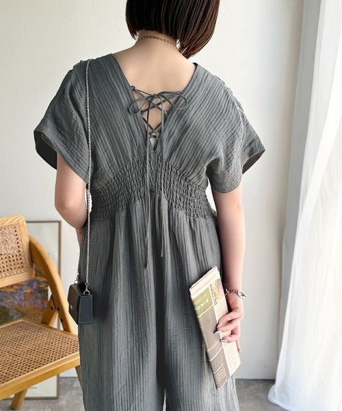 肌にふわり。大人の余裕をまとって、今日を心地よく。レースアップバックリボンオールインワン ce1070163