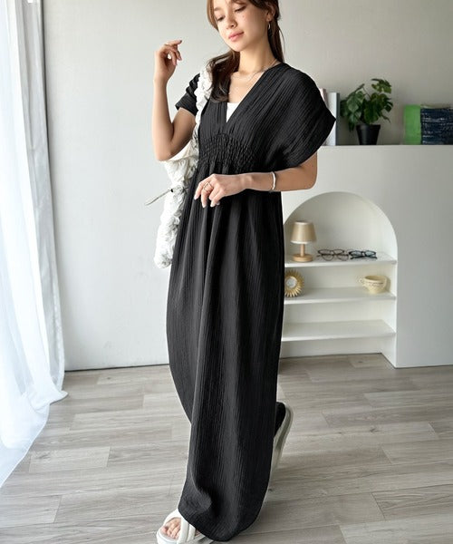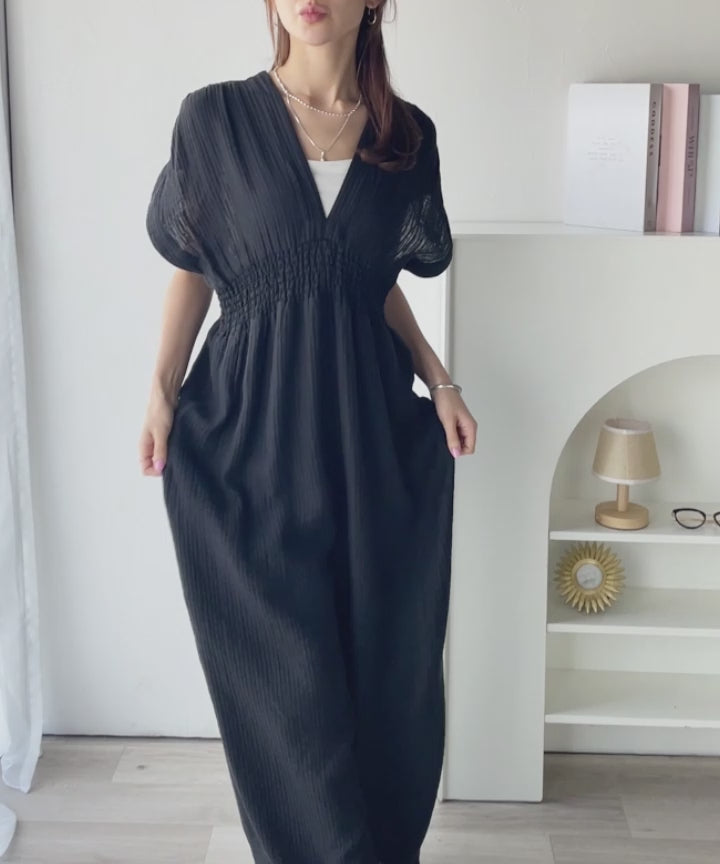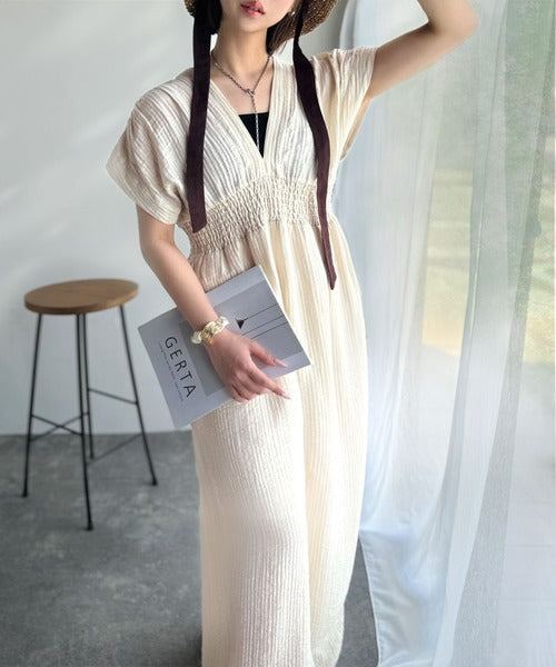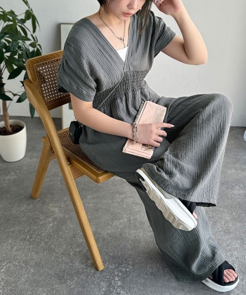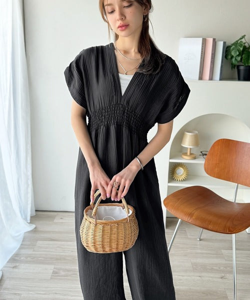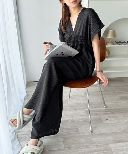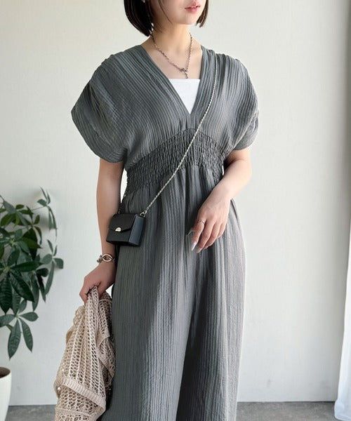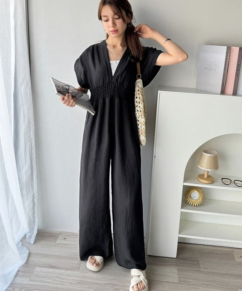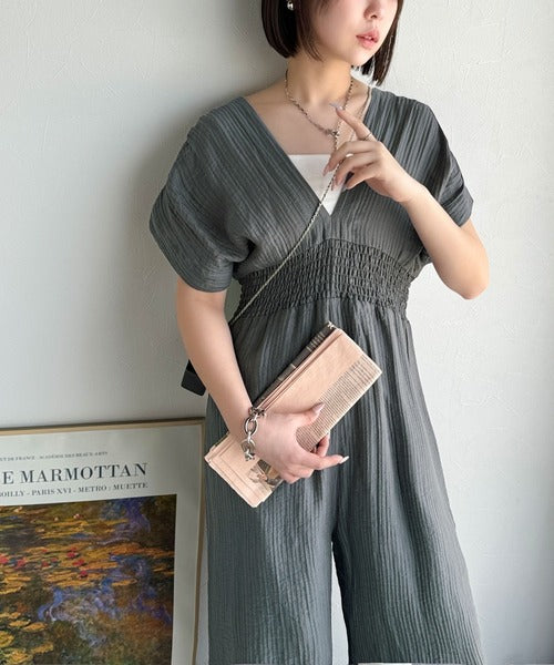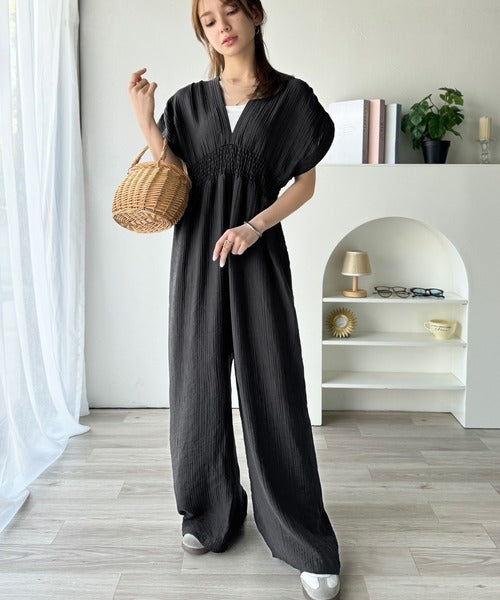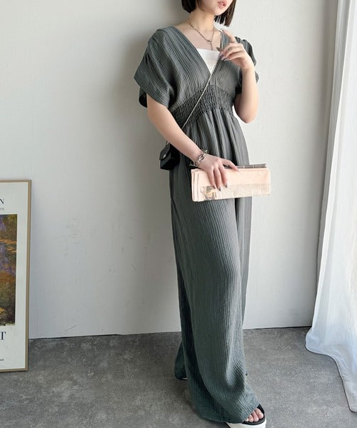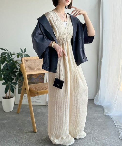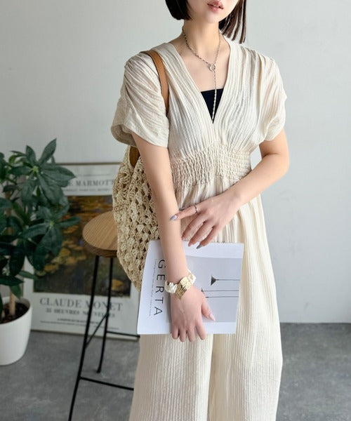 肌にふわり。大人の余裕をまとって、今日を心地よく。レースアップバックリボンオールインワン ce1070163