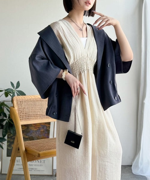 肩や二の腕をさりげなくカバーしてくれる袖丈も魅力。