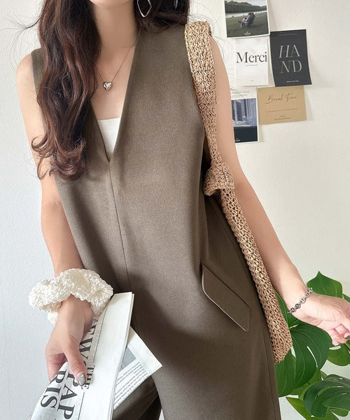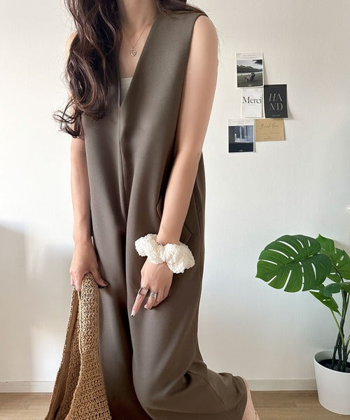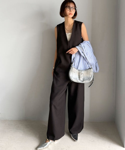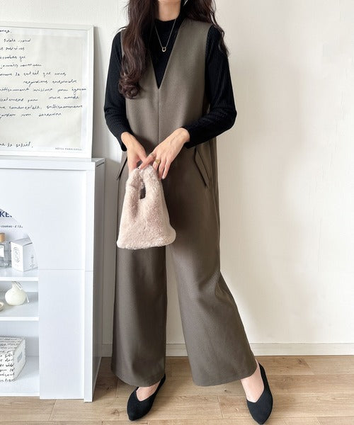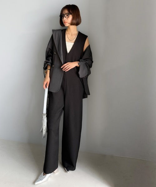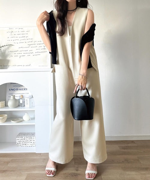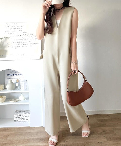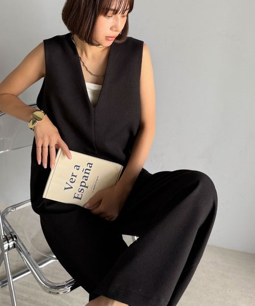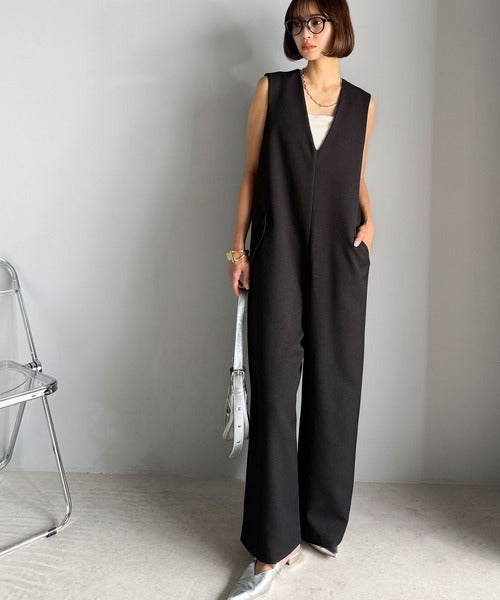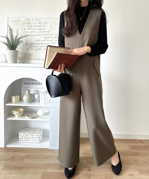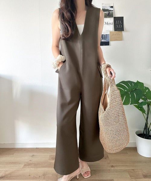 大人の抜け感が叶う、華奢見えVネックサロペット。
